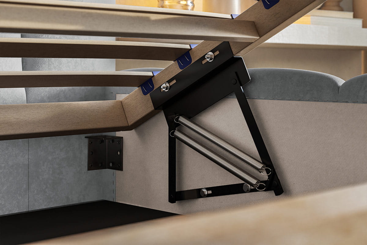W rozmiarze 200×200 cm łóżko Monzo Slim wyposażone jest w standardzie w metalowy stelaż z 36 listwami, który zapewnia solidne i stabilne podparcie dla materaca oraz wysoki komfort snu.
