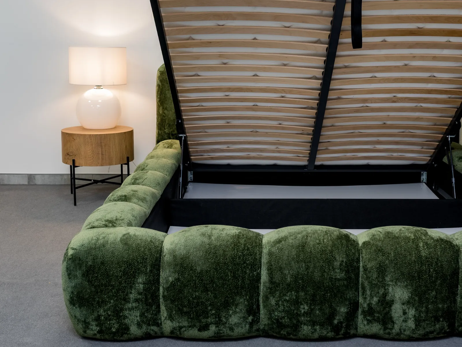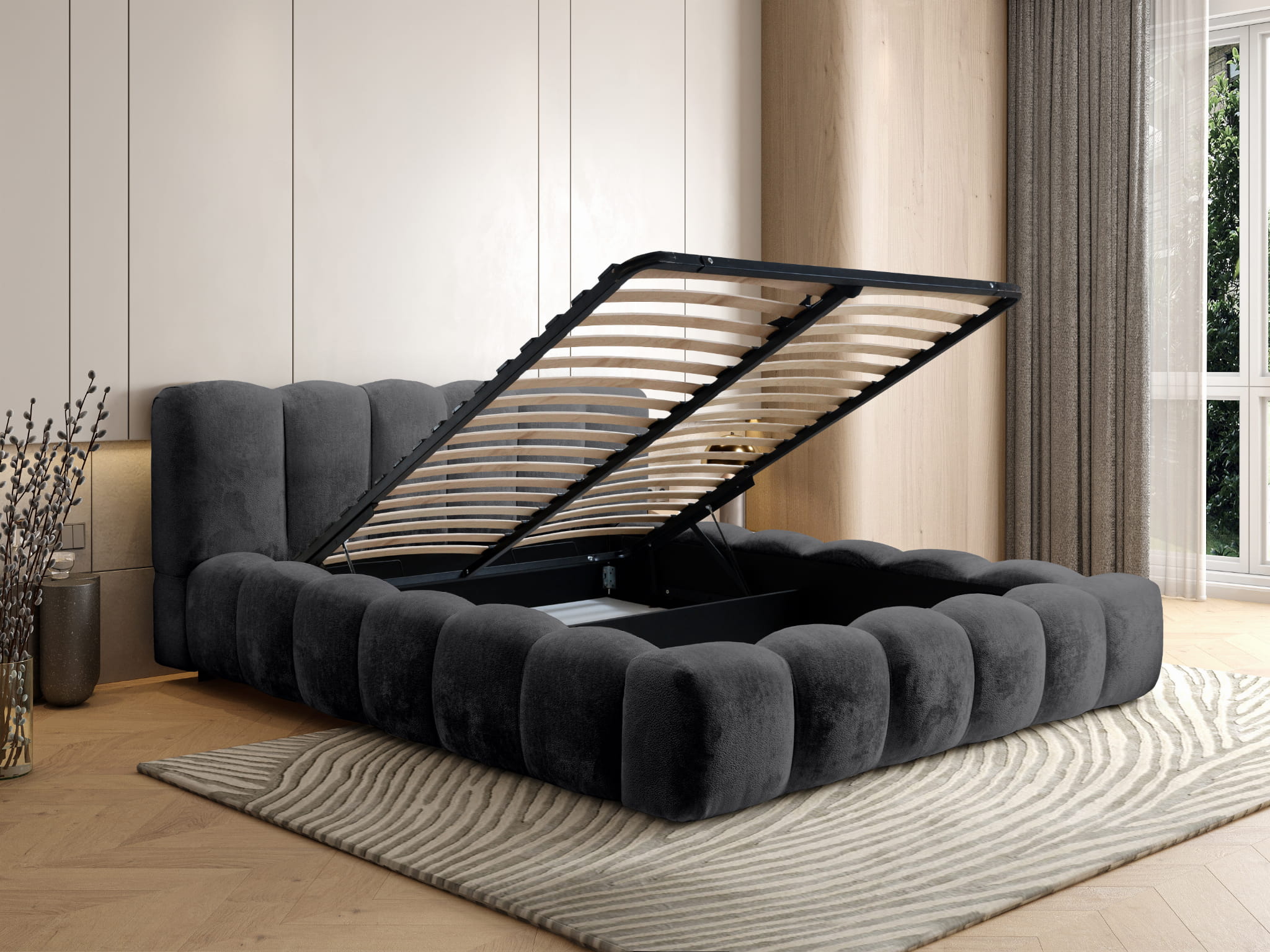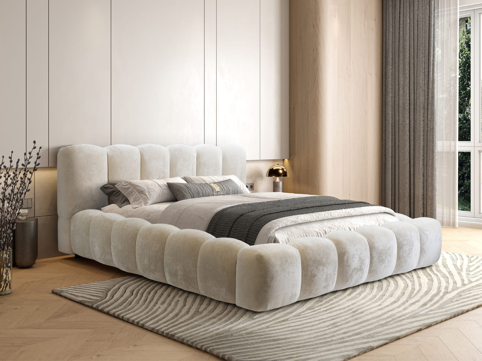Łóżko tapicerowane 200x200 ROSA z metalowym stelażem i pojemnikiem beżowe szenilowe