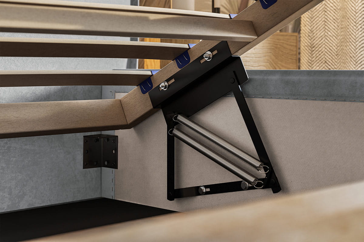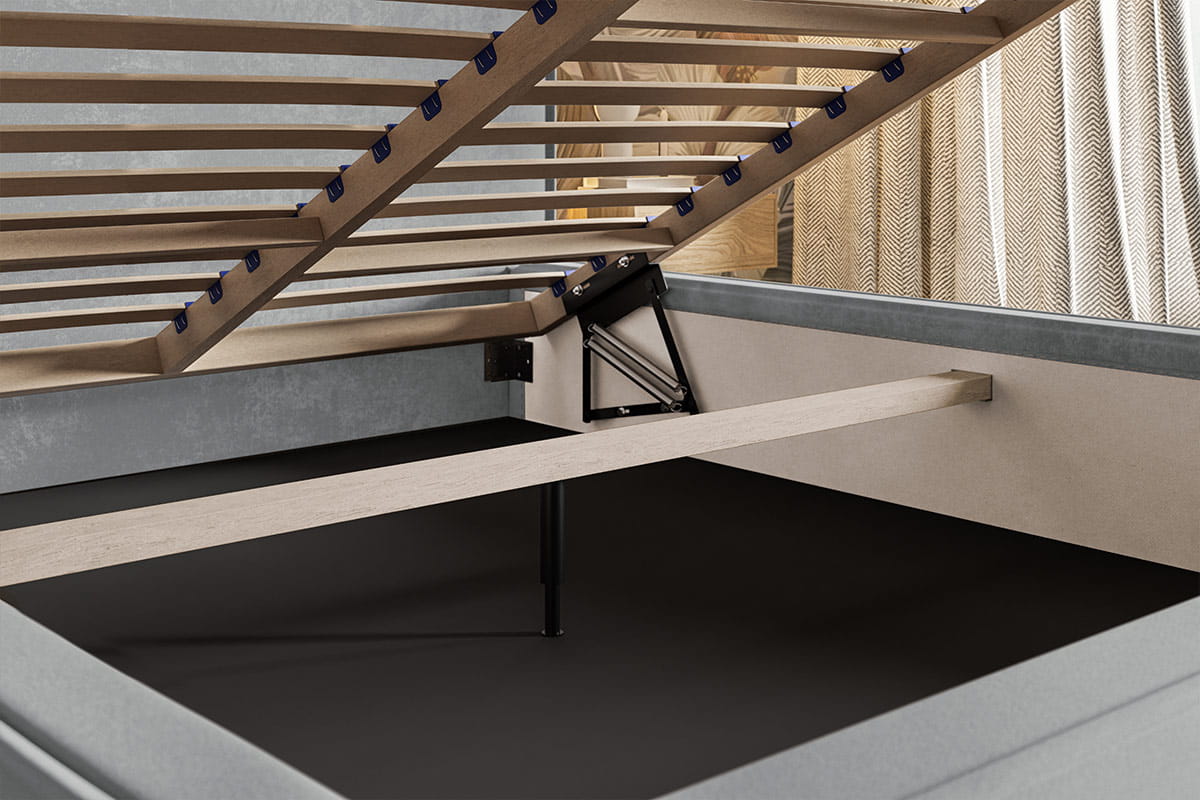 Łóżko Flano Slim wyposażone jest w praktyczny pojemnik na pościel, który pozwala na optymalne wykorzystanie przestrzeni i utrzymanie porządku. Innowacyjne, materiałowe dno pojemnika zapewnia wygodne przechowywanie kołder, poduszek i innych tekstyliów. Stabilny stelaż dba o trwałość i wytrzymałość łóżka, gwarantując komfortowy sen na długie lata.
