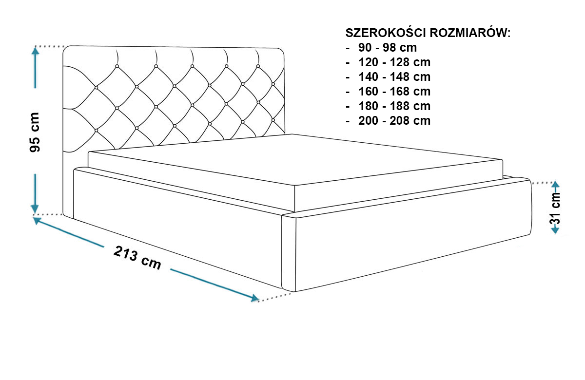 - Dostępne wymiary: 90x200, 120x200, 140x200, 160x200, 180x200, 200x200 cm