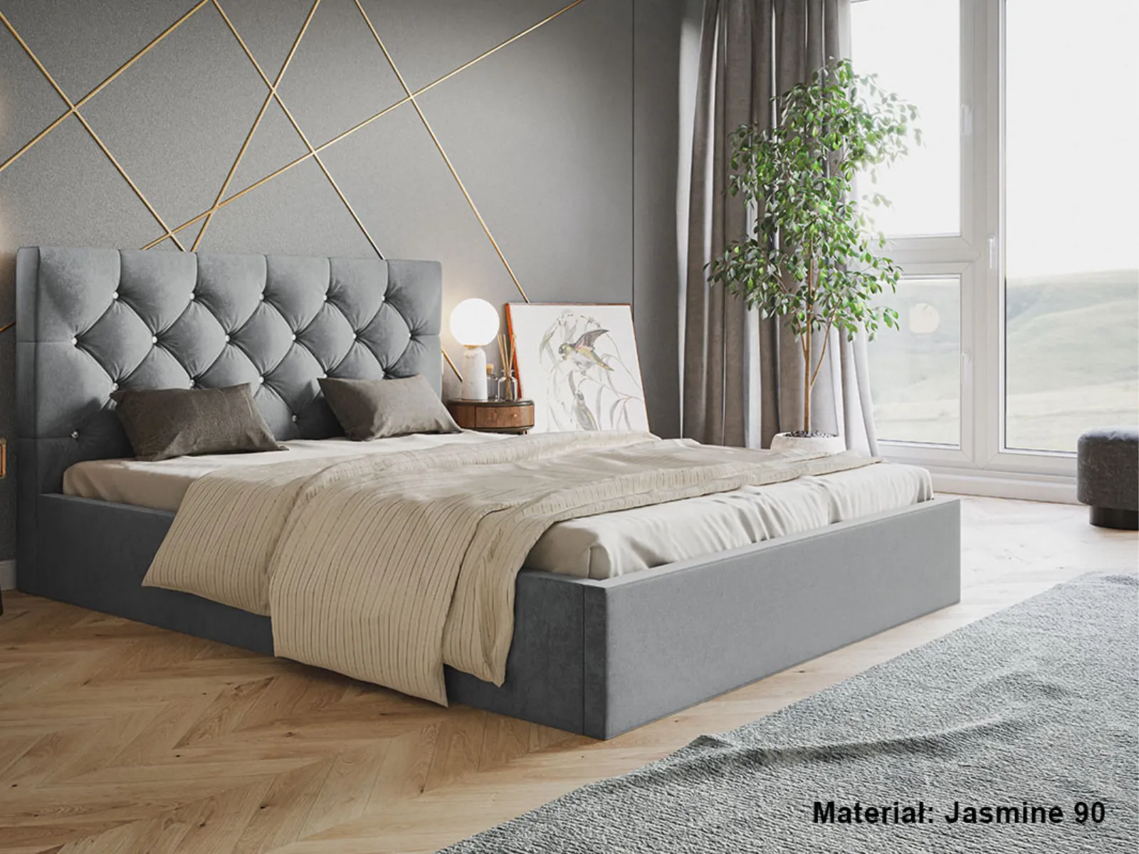 Łóżko Gaia Slim to wyjątkowa propozycja dla osób ceniących nowoczesny styl, luksusowy wygląd oraz praktyczne rozwiązania. Zachwyca efektownym, pikowanym zagłówkiem ozdobionym błyszczącymi kryształkami, które subtelnie odbijają światło, nadając wnętrzu elegancki i ekskluzywny charakter. Smukła konstrukcja SLIM sprawia, że łóżko prezentuje się lekko i nowocześnie, doskonale wpisując się w aranżacje zarówno klasyczne, jak i glamour.