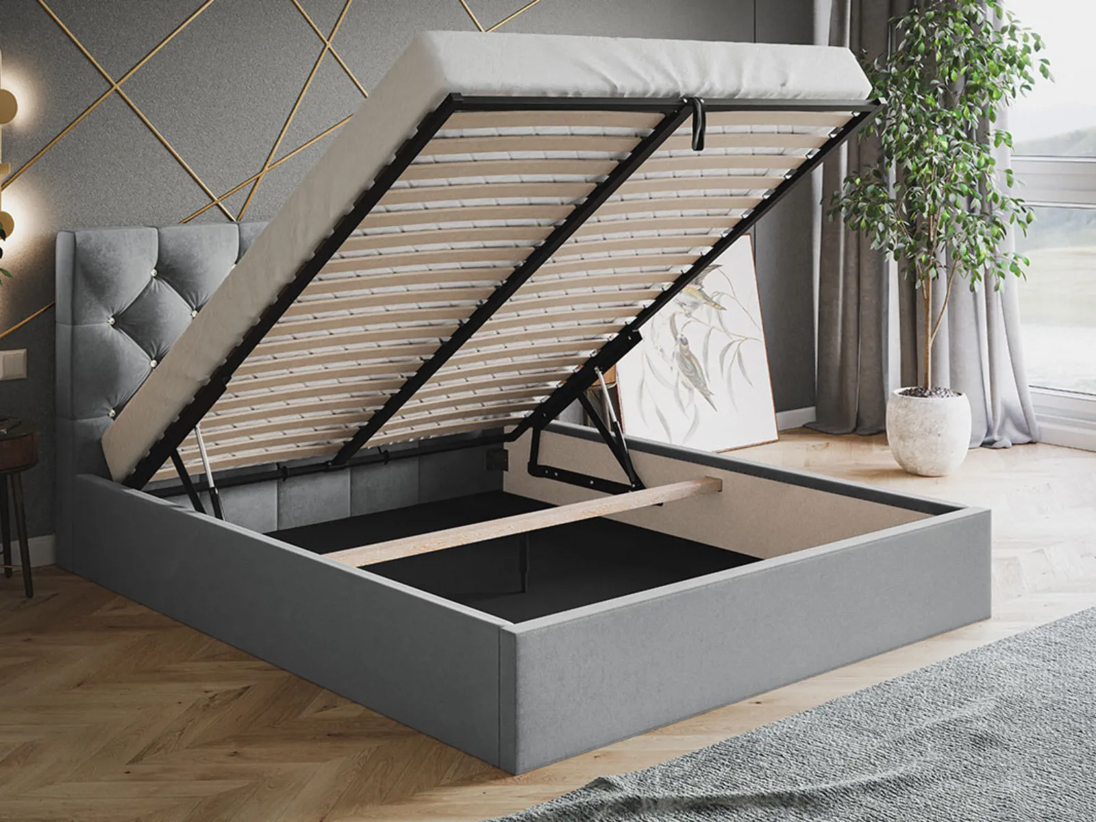 Łóżko tapicerowane Gaia Slim – elegancja i komfort z pojemnikiem na pościel