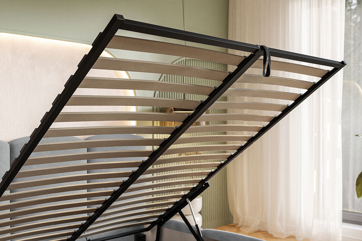 Łóżko tapicerowane 90x200 MAHIA SLIM z pojemnikiem i stelażem szary welur