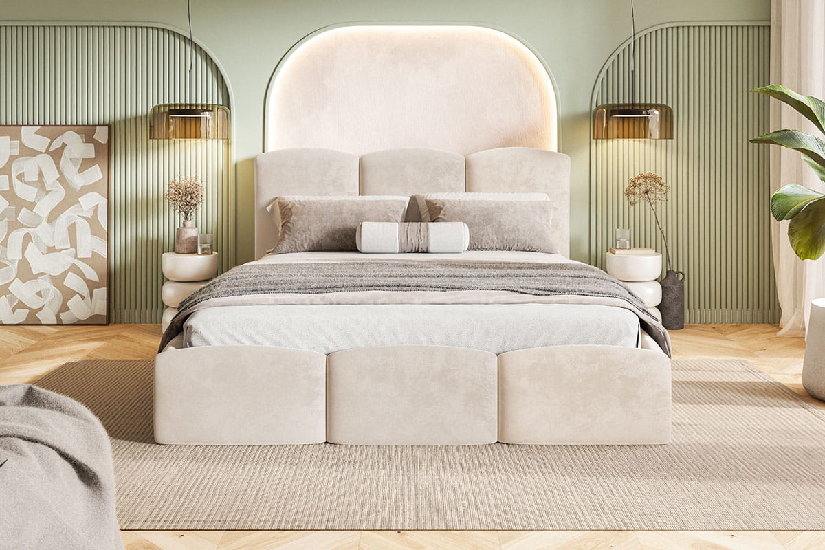 Łóżko tapicerowane Mahia Slim w szarym welurze to wyjątkowy wybór dla tych, którzy szukają elegancji, funkcjonalności i nowoczesnego designu do swojej sypialni. Jego smukła konstrukcja slim oraz estetyczne wykończenie na ramie i zagłówku nadają wnętrzu lekkości, tworząc przestrzeń pełną stylu i komfortu.