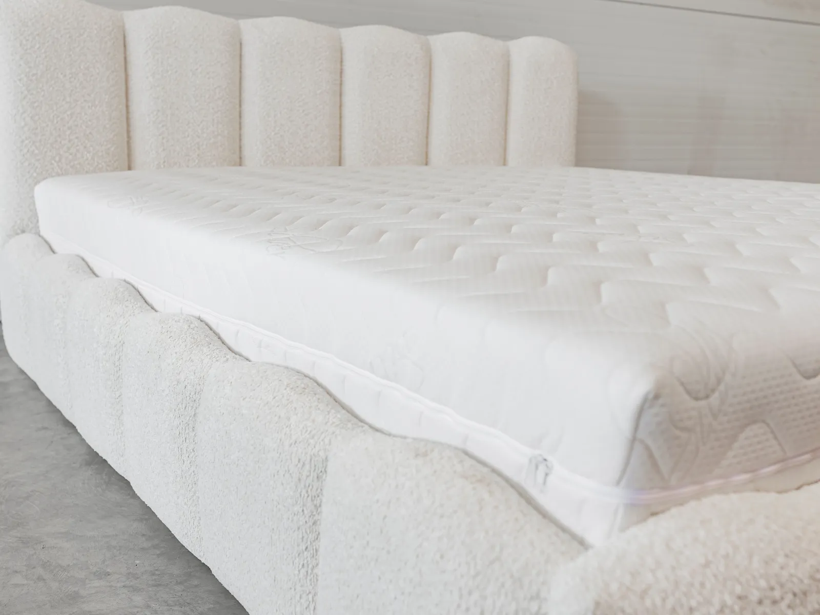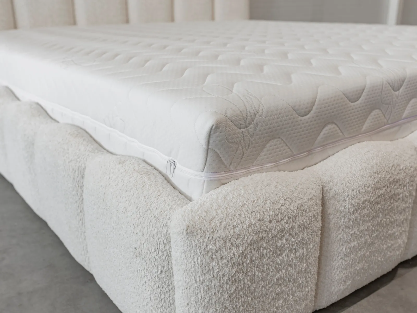Model Monzo Slim oferuje możliwość wyboru tkaniny i koloru tapicerki, dzięki czemu stworzysz łóżko tapicerowane idealnie dopasowane do swojej sypialni. W prezentowanej wersji łóżko wykonane jest z beżowej tkaniny Jasmine 21, jednak dostępna jest szeroka gama innych materiałów i kolorów.