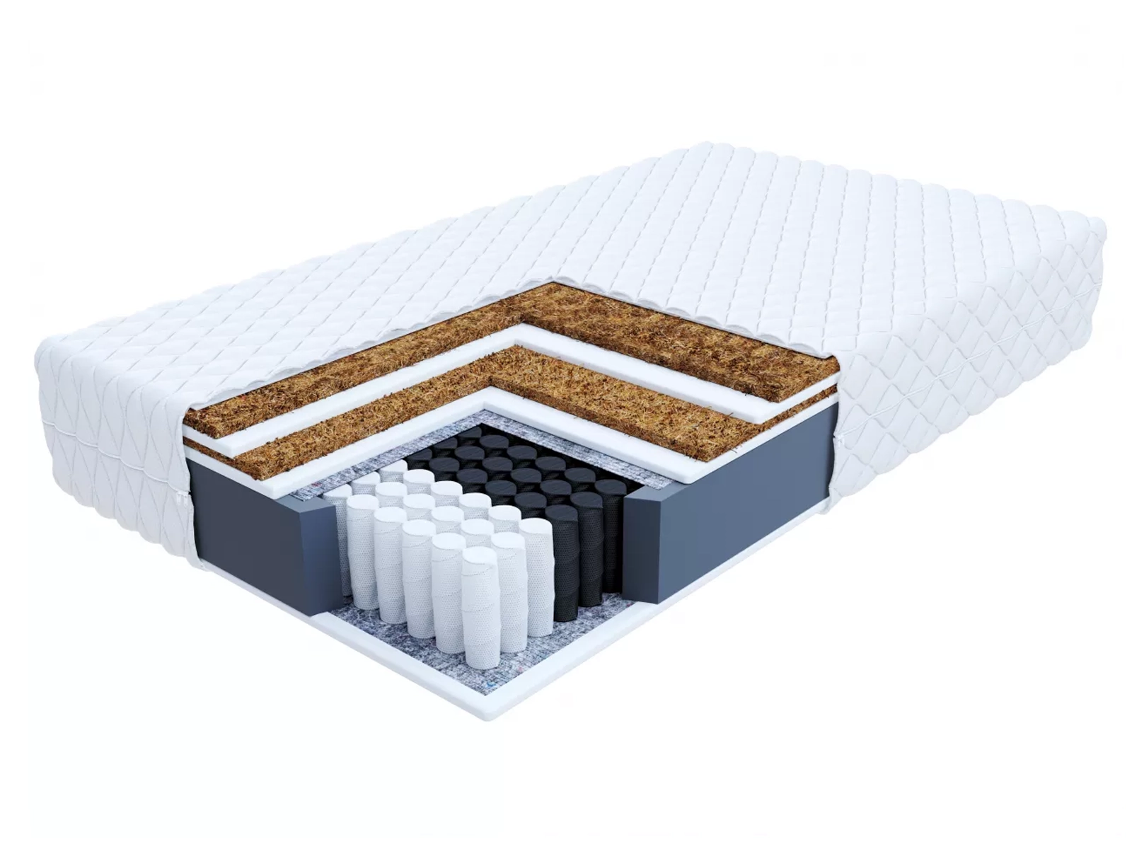 • Podwójna warstwa kokosu: Zapewnia dodatkową sztywność materaca. Włókna kokosowe są lekkie, przewiewne, trwałe i elastyczne, odporne na wilgoć i odkształcenia oraz posiadają właściwości antyalergiczne.