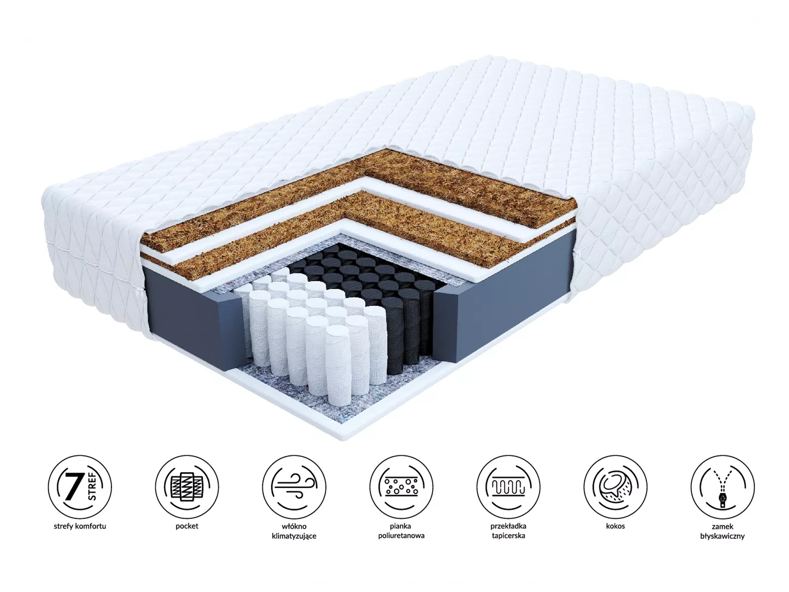 Materac kieszeniowy 90x200 INDIANA H5/H3 grubość 26 cm, podwójny kokos