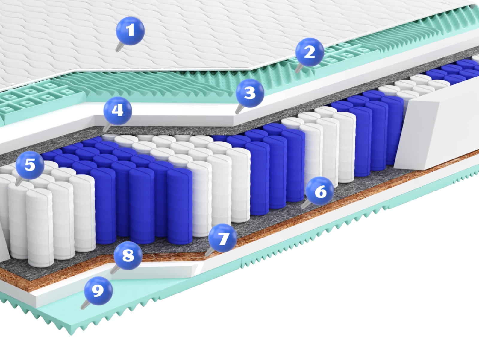 - 9-cio strefowe sprężyny kieszeniowe