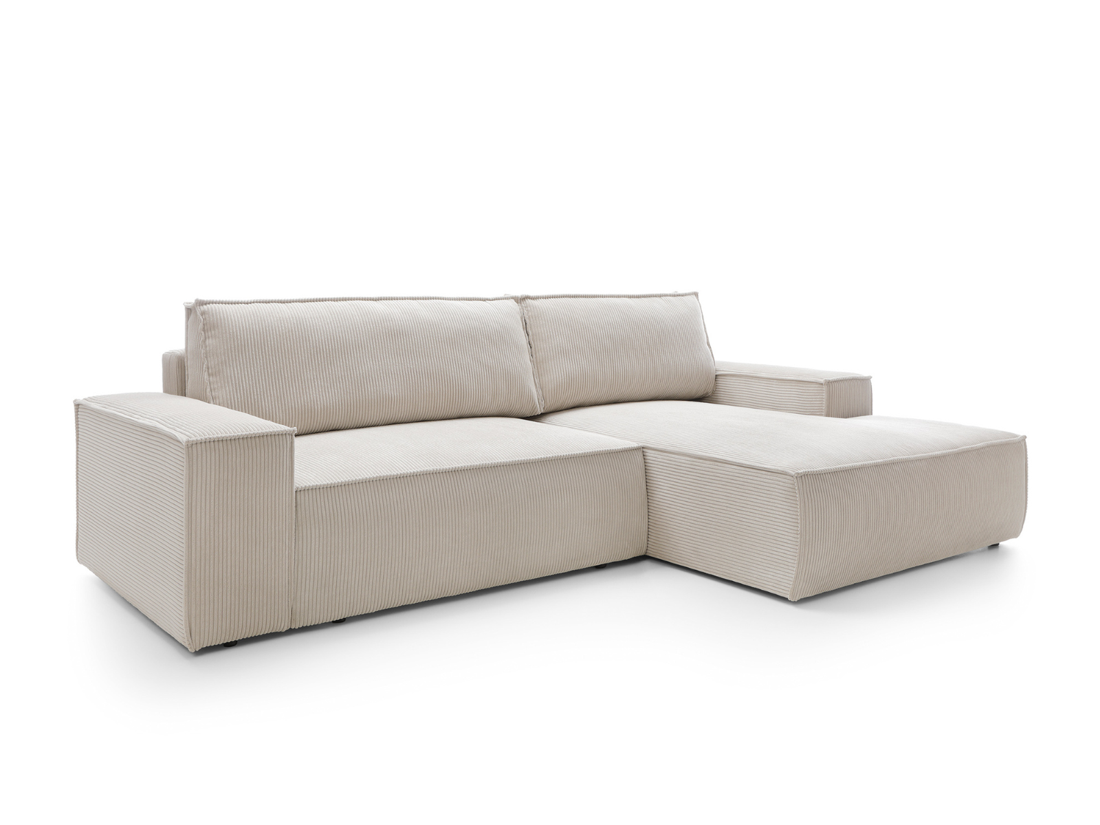 Wykonany z miękkiego, przyjemnego w dotyku beżowego sztruksu, narożnik wprowadza do wnętrza elegancję i przytulność, a jego uniwersalny design idealnie wpisuje się zarówno w nowoczesne, jak i klasyczne aranżacje.