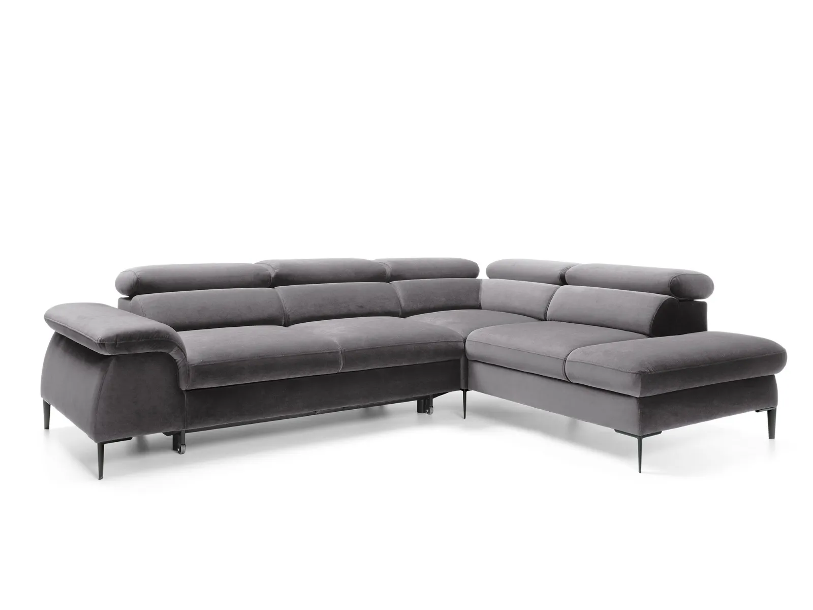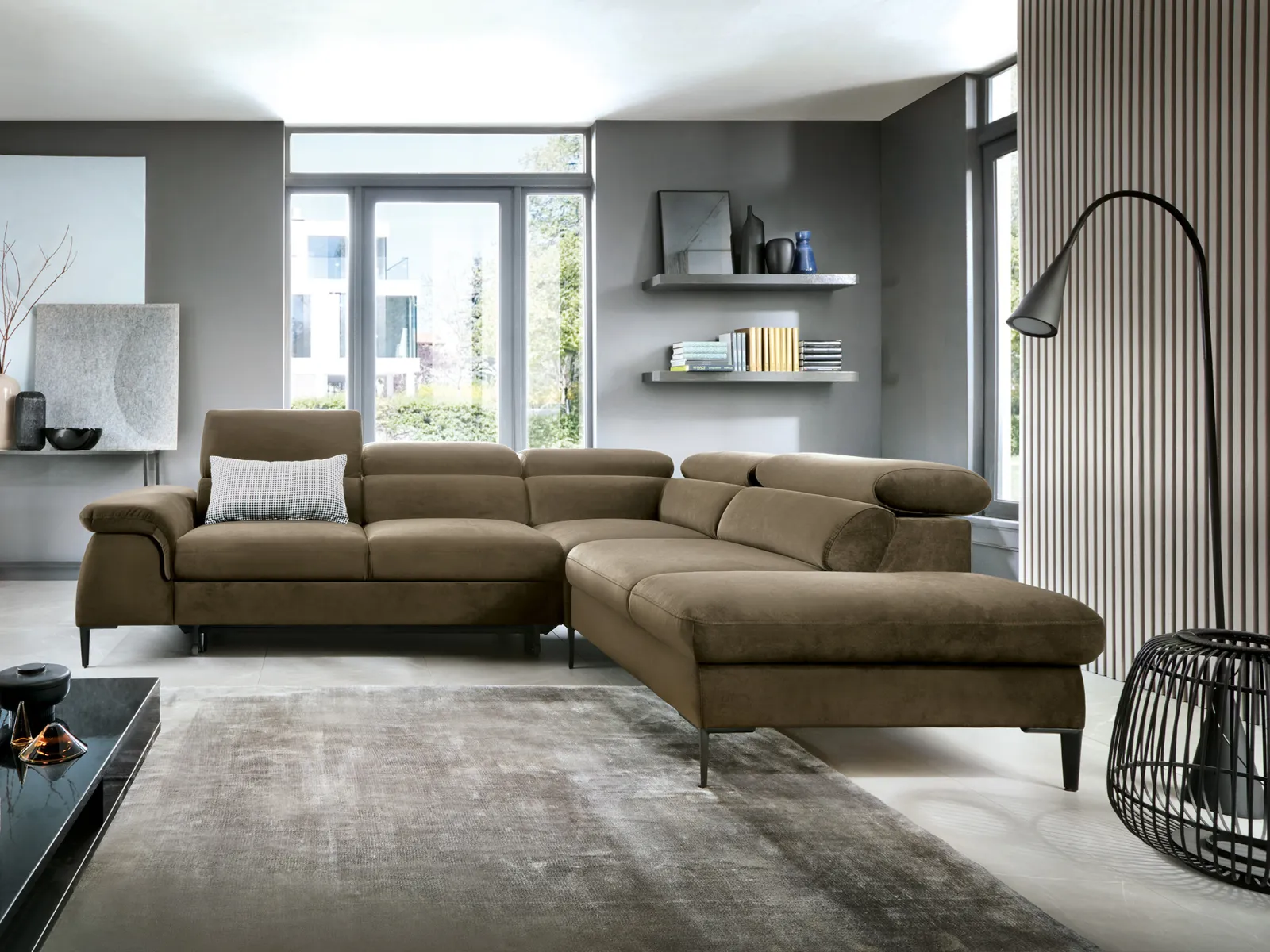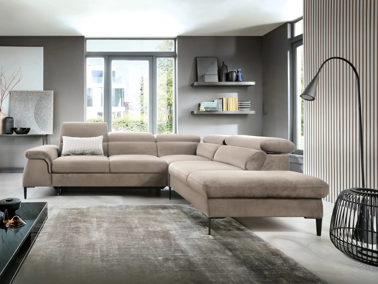 Wybierz narożnik L-kształtny BELLUNO z funkcją spania i regulowanymi zagłówkami, a Twój salon stanie się miejscem, w którym z przyjemnością spędzasz każdą chwilę.
