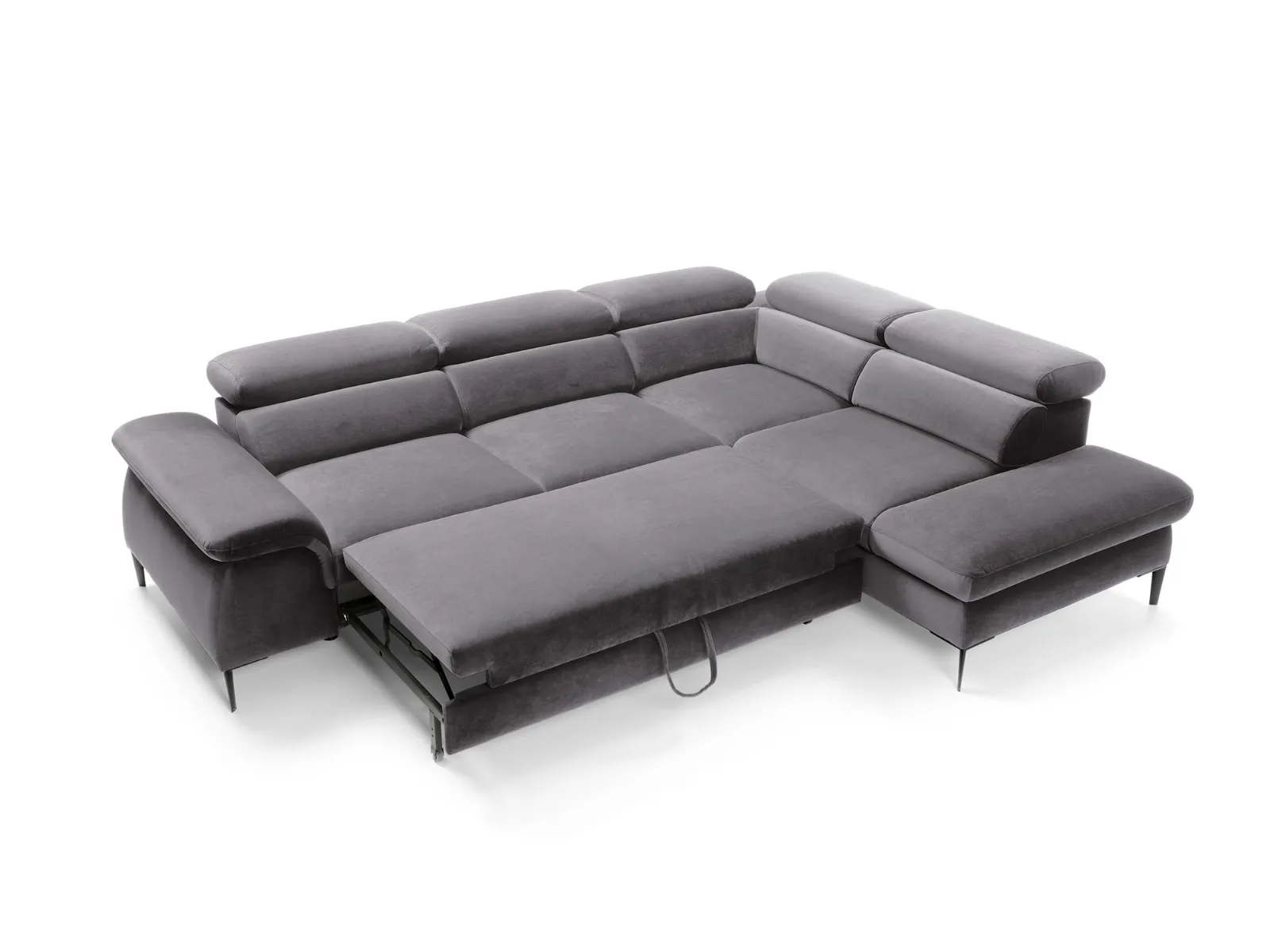 - Funkcja spania – w kilka chwil zamienisz narożnik w komfortowe łóżko, idealne do codziennego wypoczynku lub dla gości.