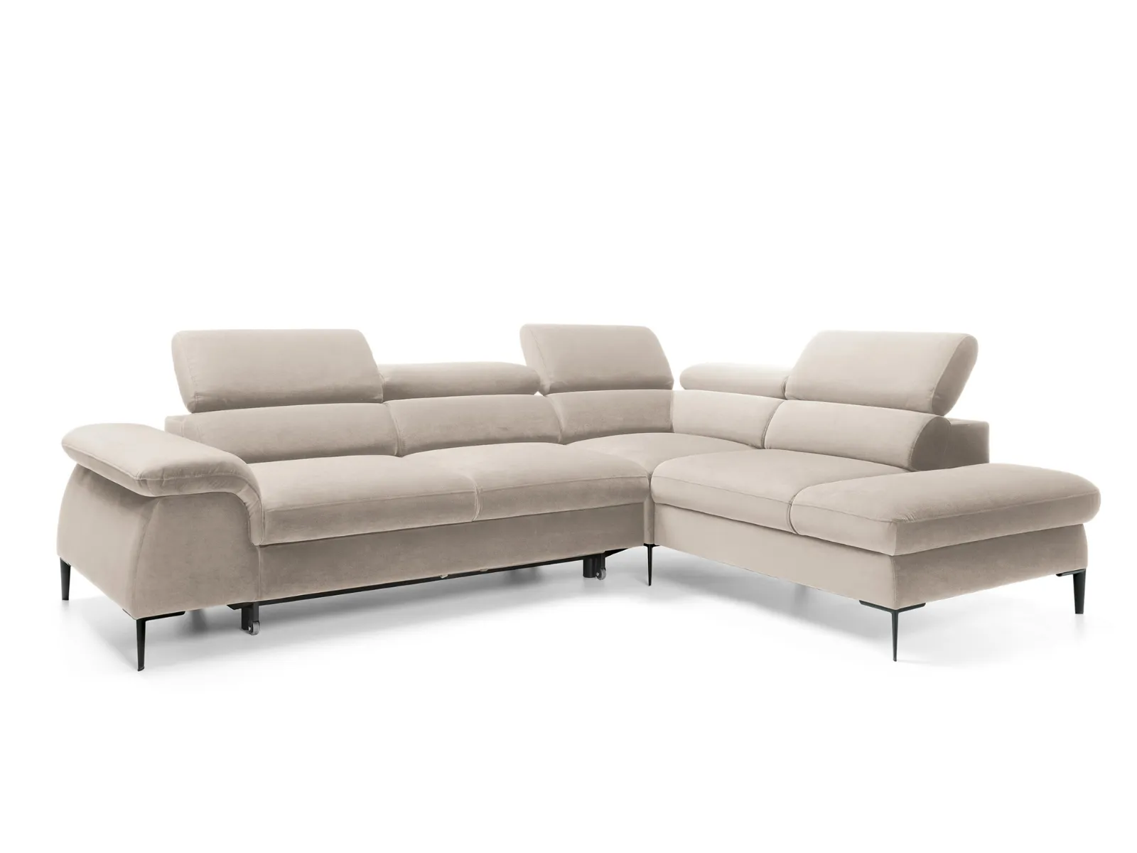 Narożnik L-kształtny 280x214 BELLUNO z regulowanymi zagłówkami i funkcją spania beżowy welur