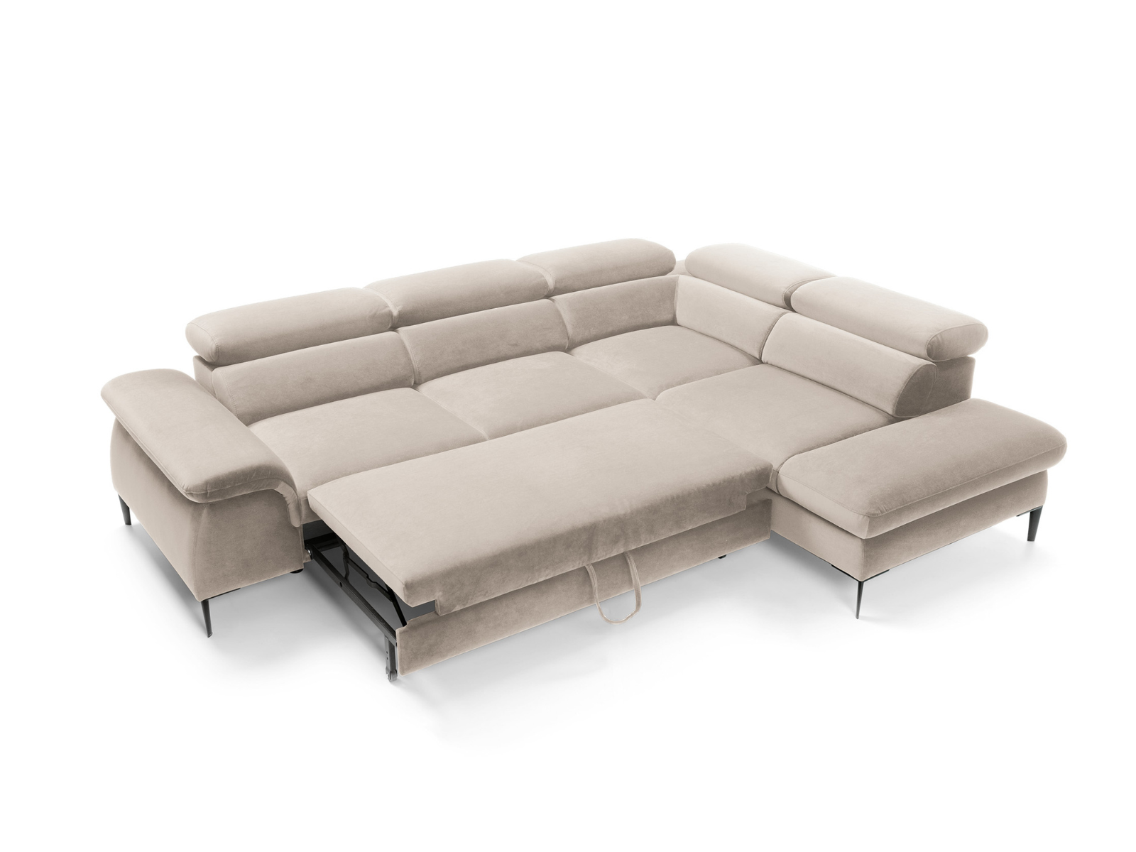 Narożnik L-kształtny 280x214 BELLUNO - beżowy welur, funkcja spania i regulowane zagłówki