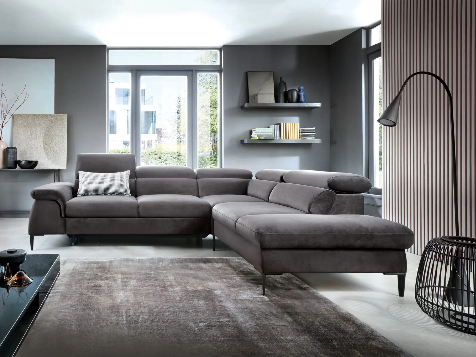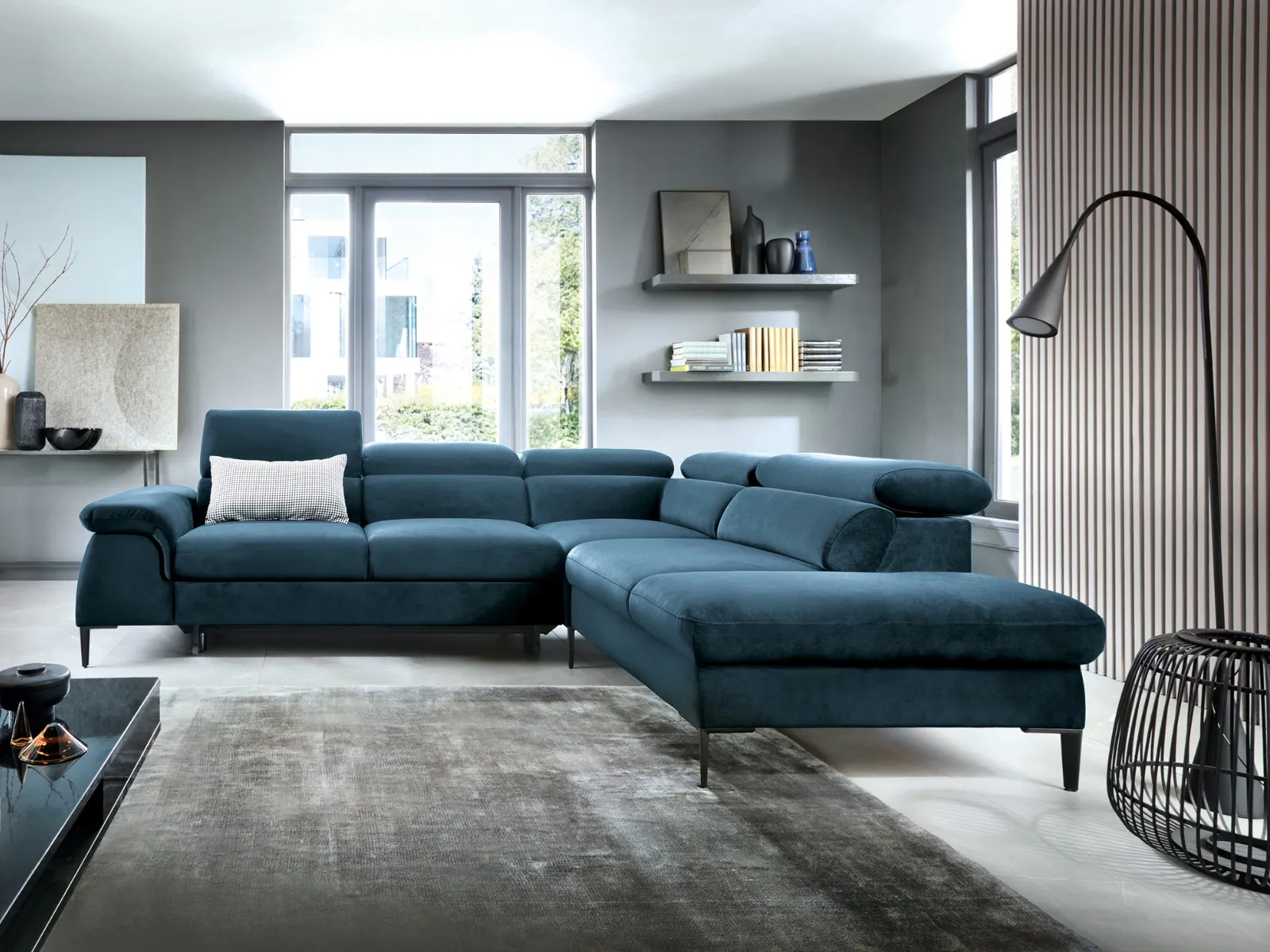 Wybierz narożnik L-kształtny BELLUNO z funkcją spania i regulowanymi zagłówkami, a Twój salon stanie się miejscem, w którym z przyjemnością spędzasz każdą chwilę.