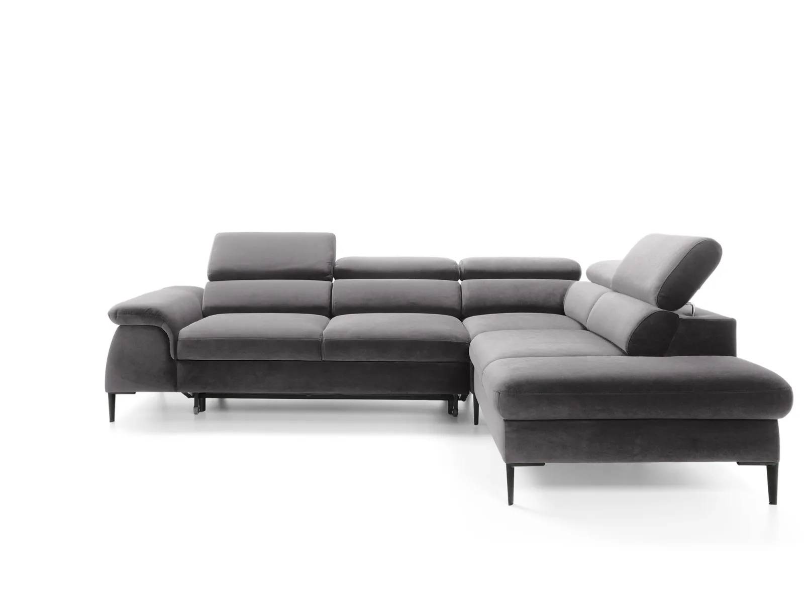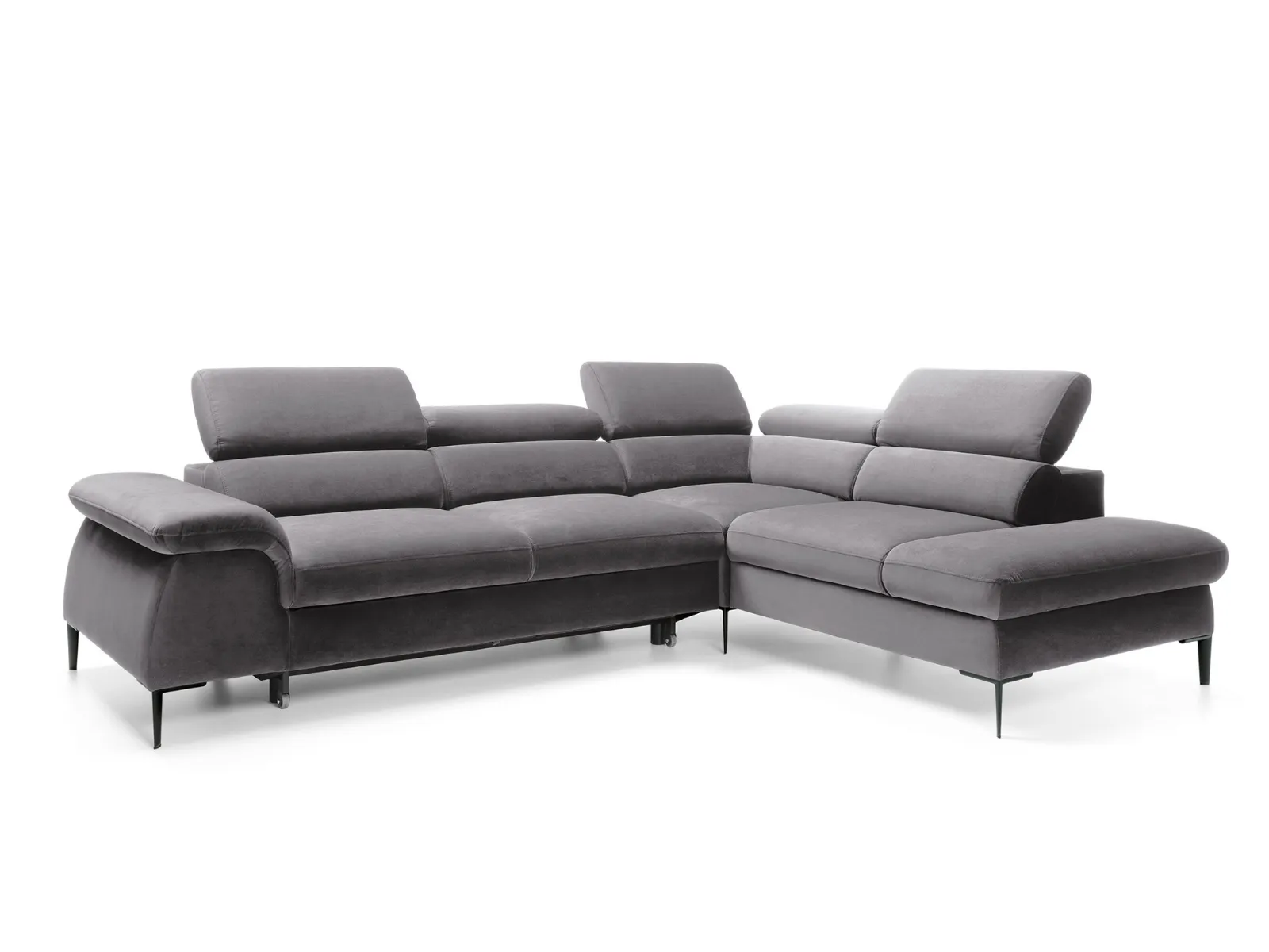 Narożnik L-kształtny 280x214 BELLUNO z regulowanymi zagłówkami i funkcją spania grafitowy welur
