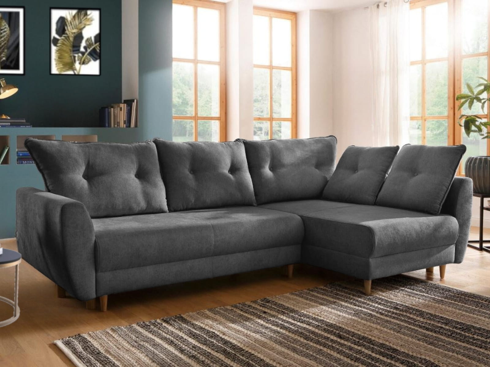 Wytrzymała konstrukcja narożnika PAUL opiera się na wysokiej jakości materiałach, takich jak drewno oraz laminowana płyta wiórowa. Nóżki z litego drewna nadają mu nowoczesny wygląd, a jednocześnie podnoszą stabilność. Starannie dobrane surowce zapewniają odporność na codzienne zużycie. Poduszki oparciowe wypełniono granulatem, co zapewnia ich sprężystość i wygodę.