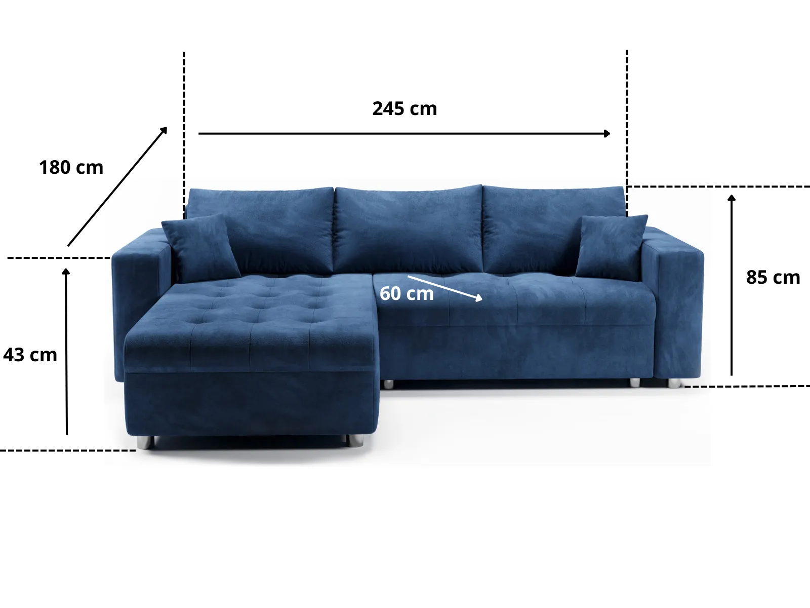 | Głębokość siedziska z poduszkami | 60 cm |