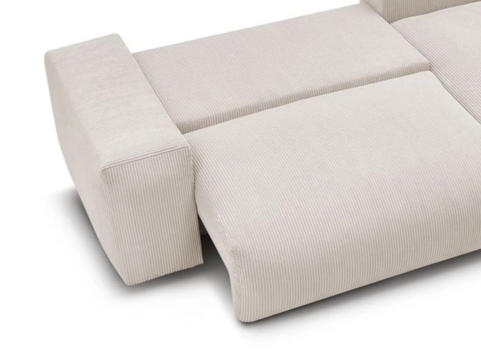 Nasza tkanina sztruksowa dodaje elegancji i luksusowego wyglądu do Twojego wnętrza, zachwycając zarówno wzornictwem, jak i wygodą. Dzięki funkcji spania, narożnik szybko zamienia się w wygodne łóżko, co sprawia, że jest idealnym rozwiązaniem dla niespodziewanych gości lub po prostu jako dodatkowe miejsce do wypoczynku.