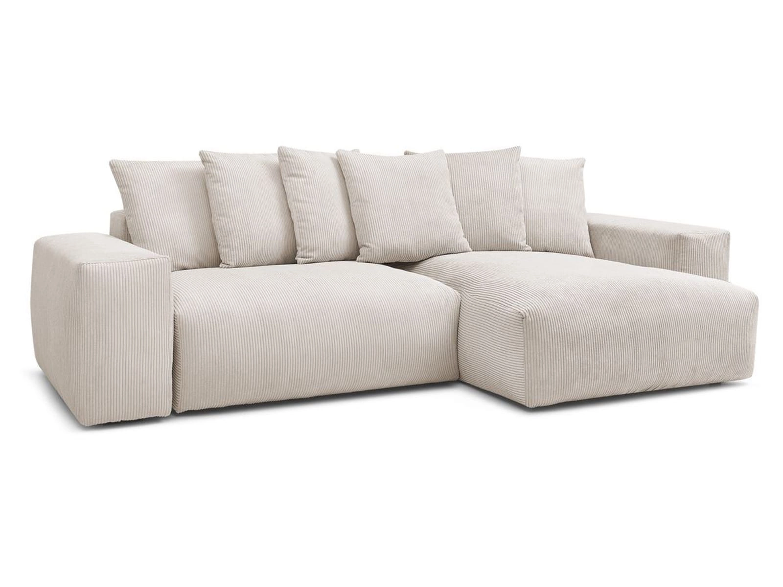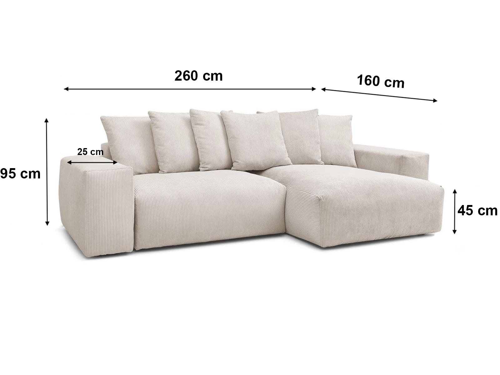 Narożnik z funkcją spania L-kształtny 260x160 LUIS beżowa tkanina z pojemnikiem na pościel