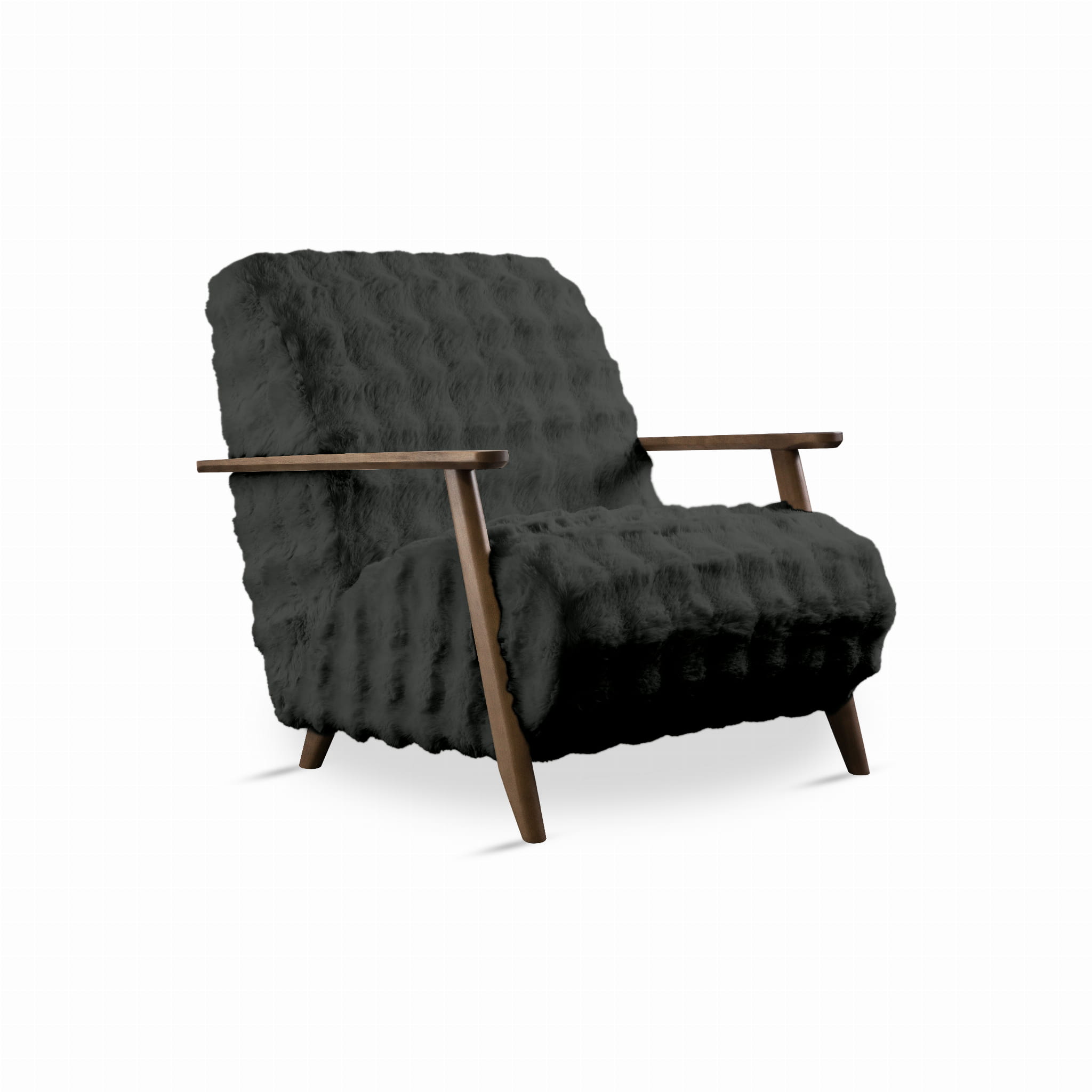 Nowoczesny Fotel FLUF na drewnianych nogach czarne futerko