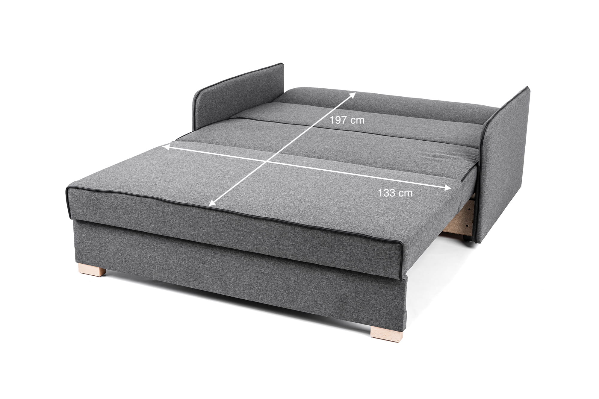 Sofa ALBIN 3 została zaprojektowana z myślą o praktycznym wykorzystaniu przestrzeni. Dzięki funkcji rozkładania może służyć jako łóżko trzyosobowe, oferując wygodną przestrzeń do spania o wymiarach 197×133 cm. To świetne rozwiązanie na okazjonalne noclegi.