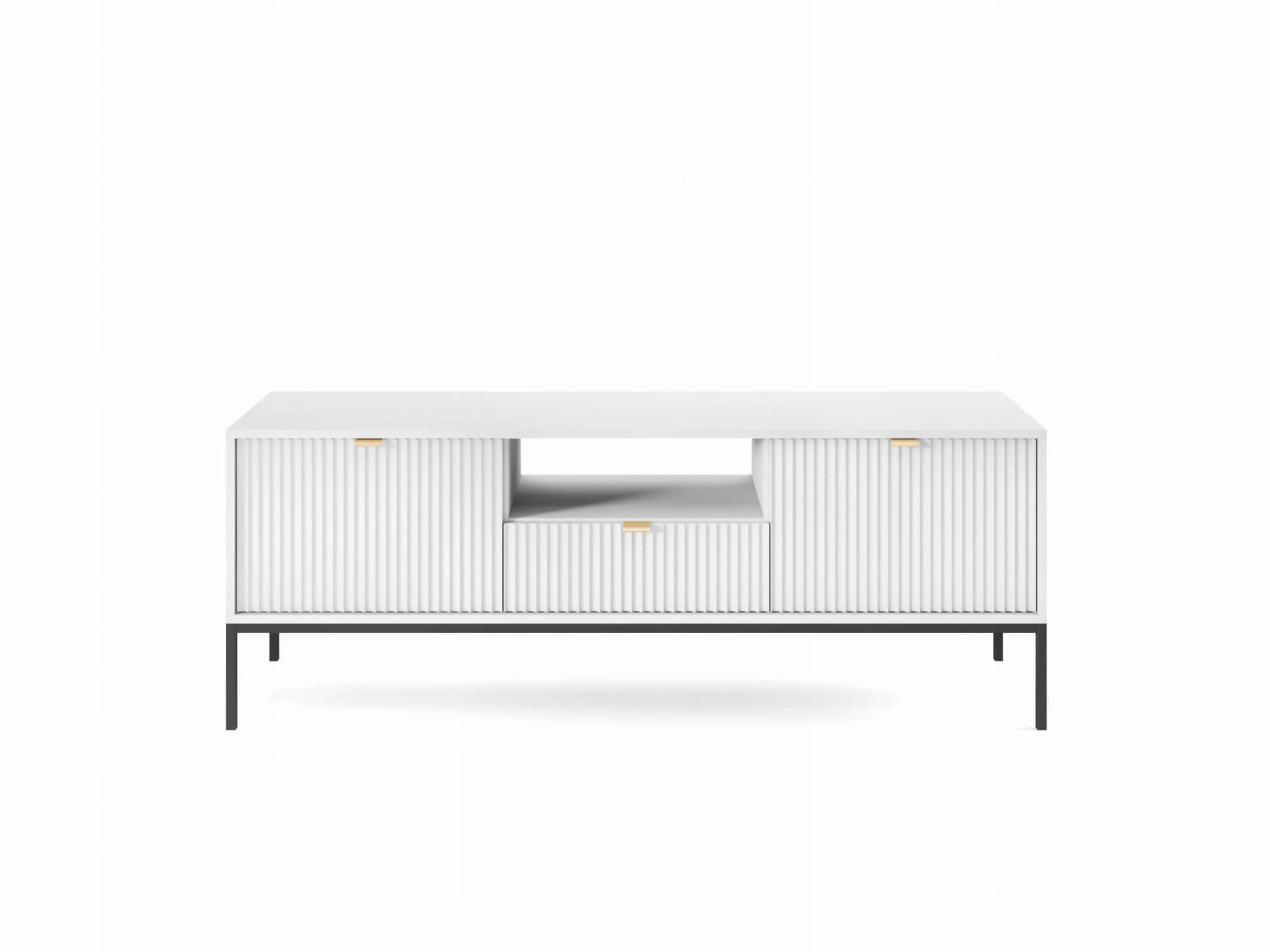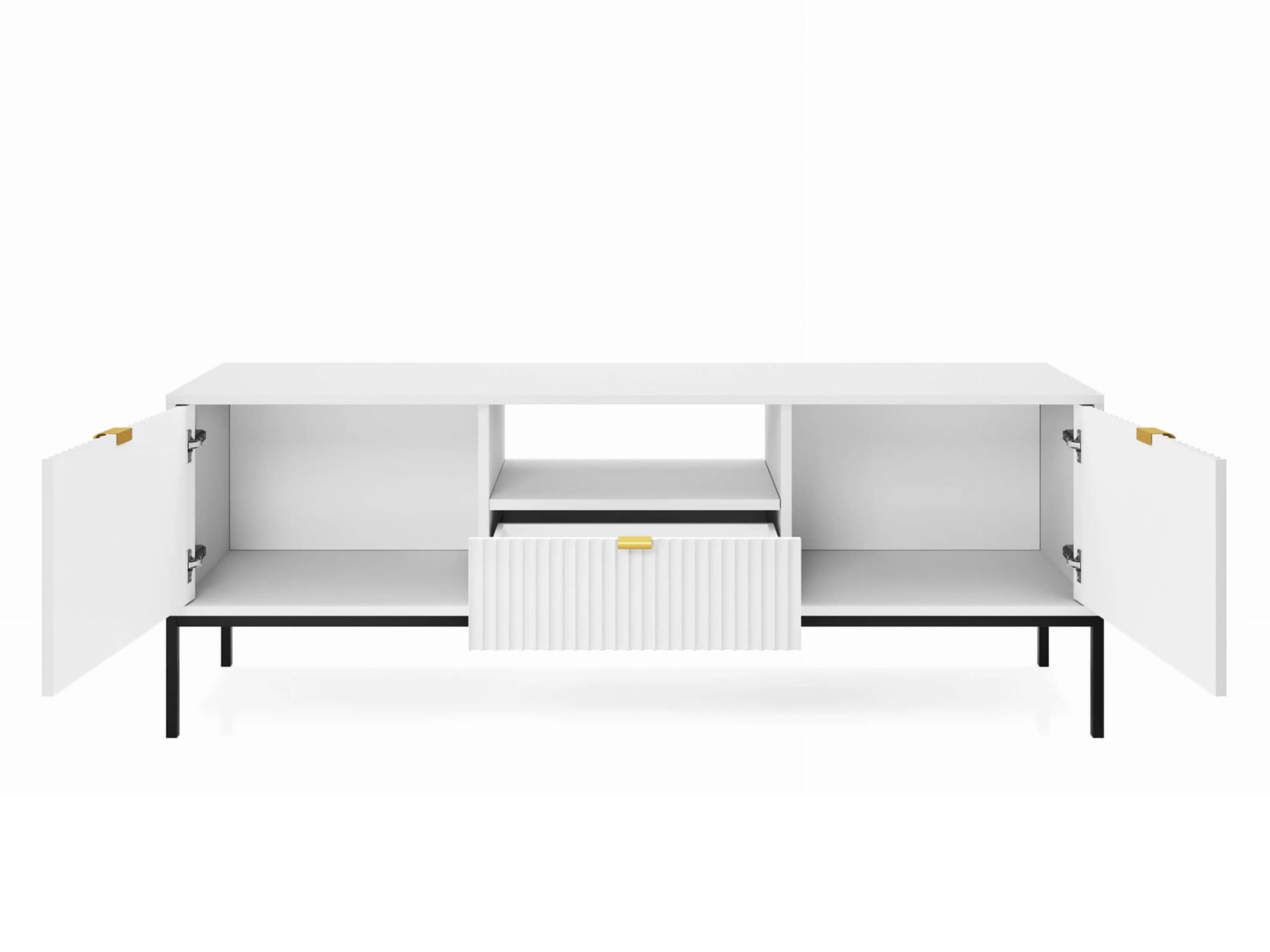 Szafka RTV 154x56x39 cm BARI L104 biała czarne nogi