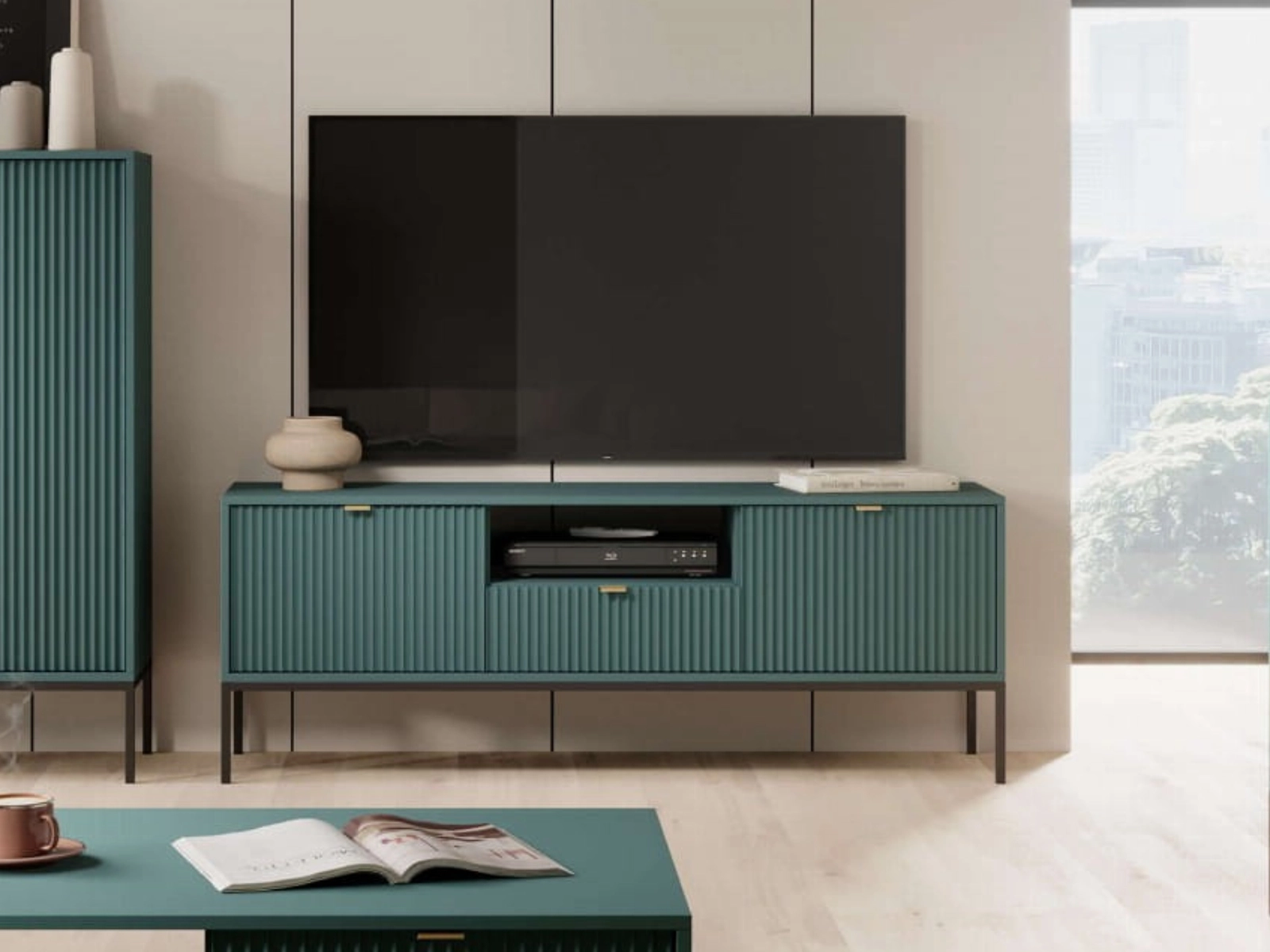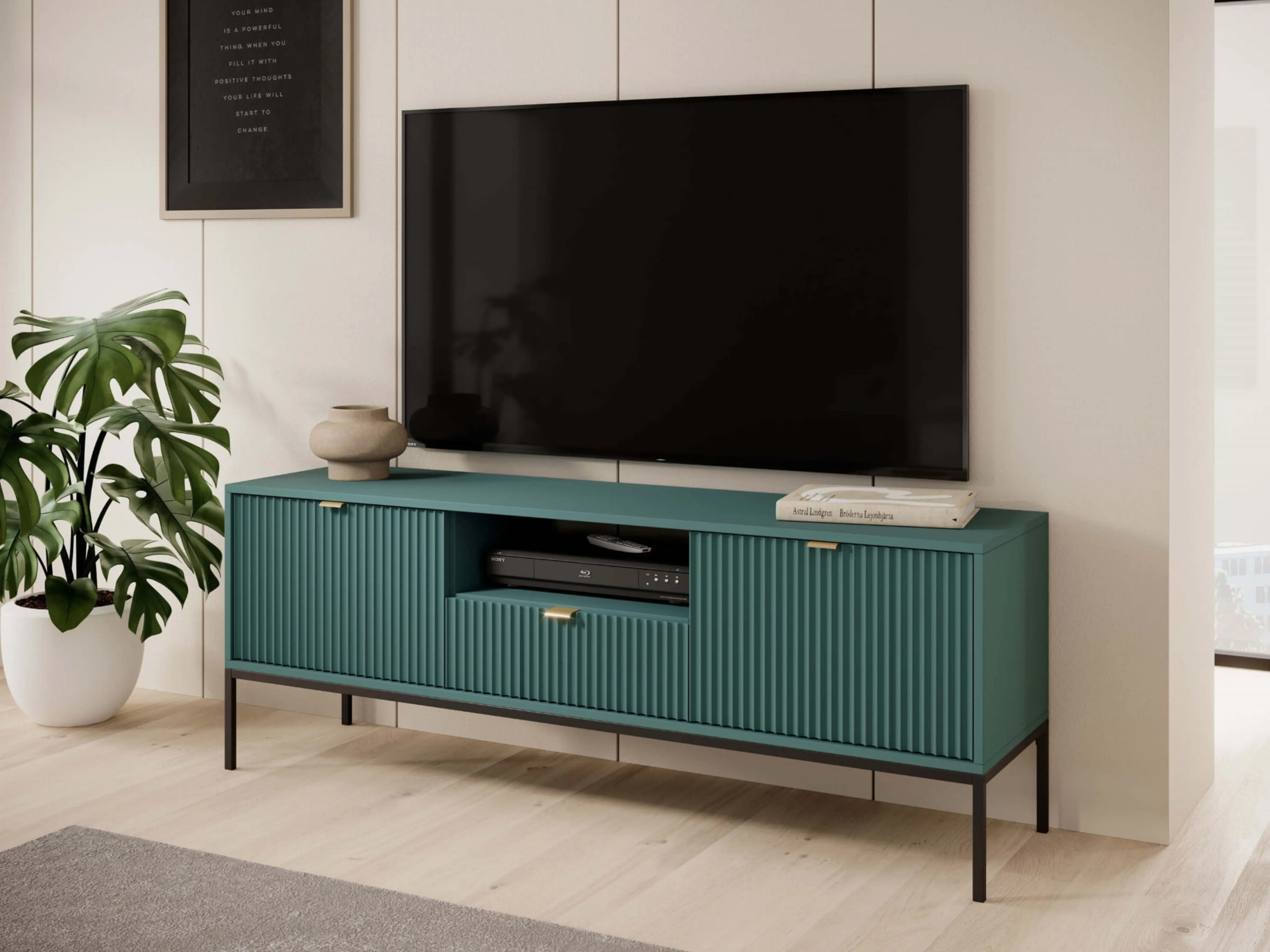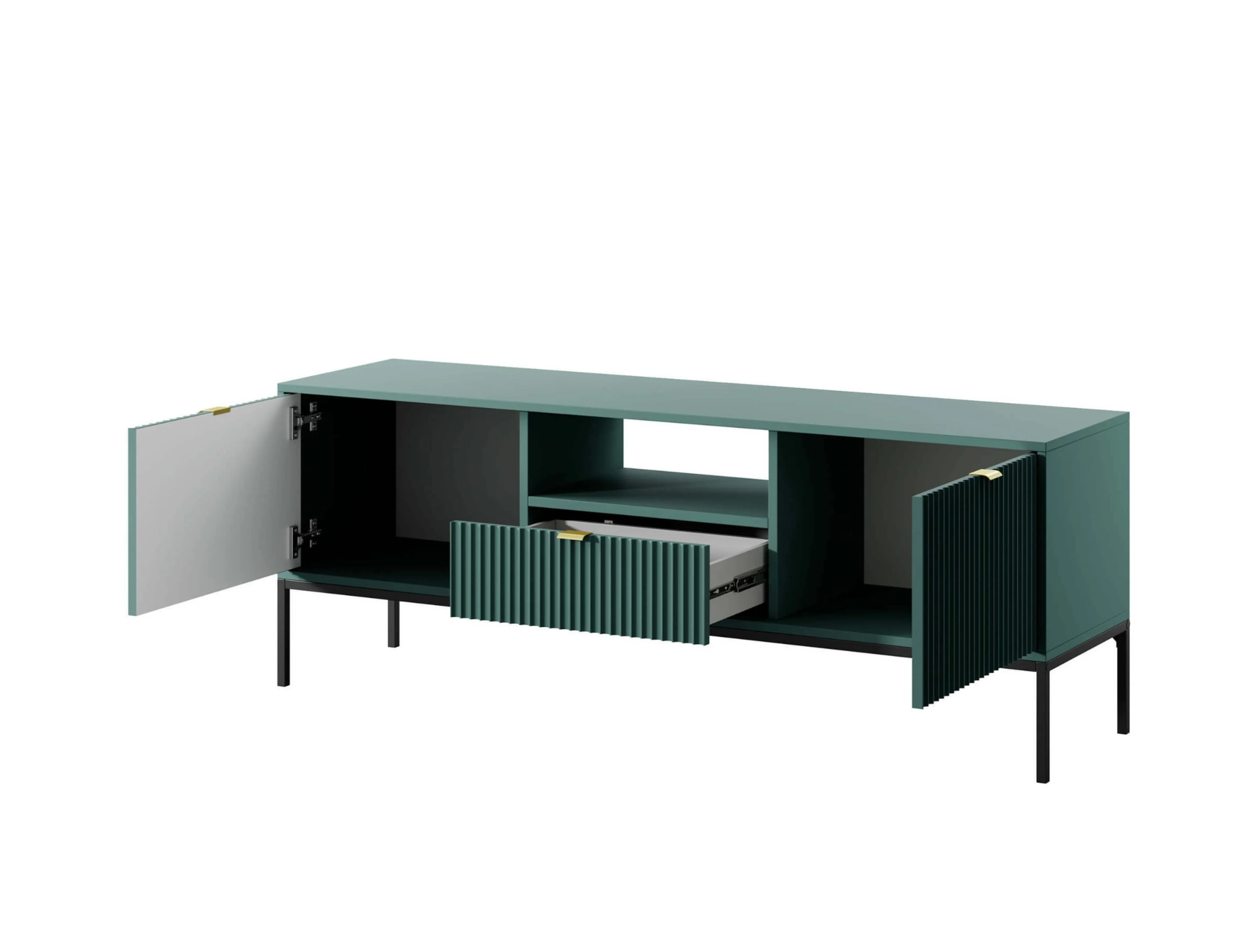 Szafka RTV 154x56x39 cm BARI L104 zielona czarne nogi