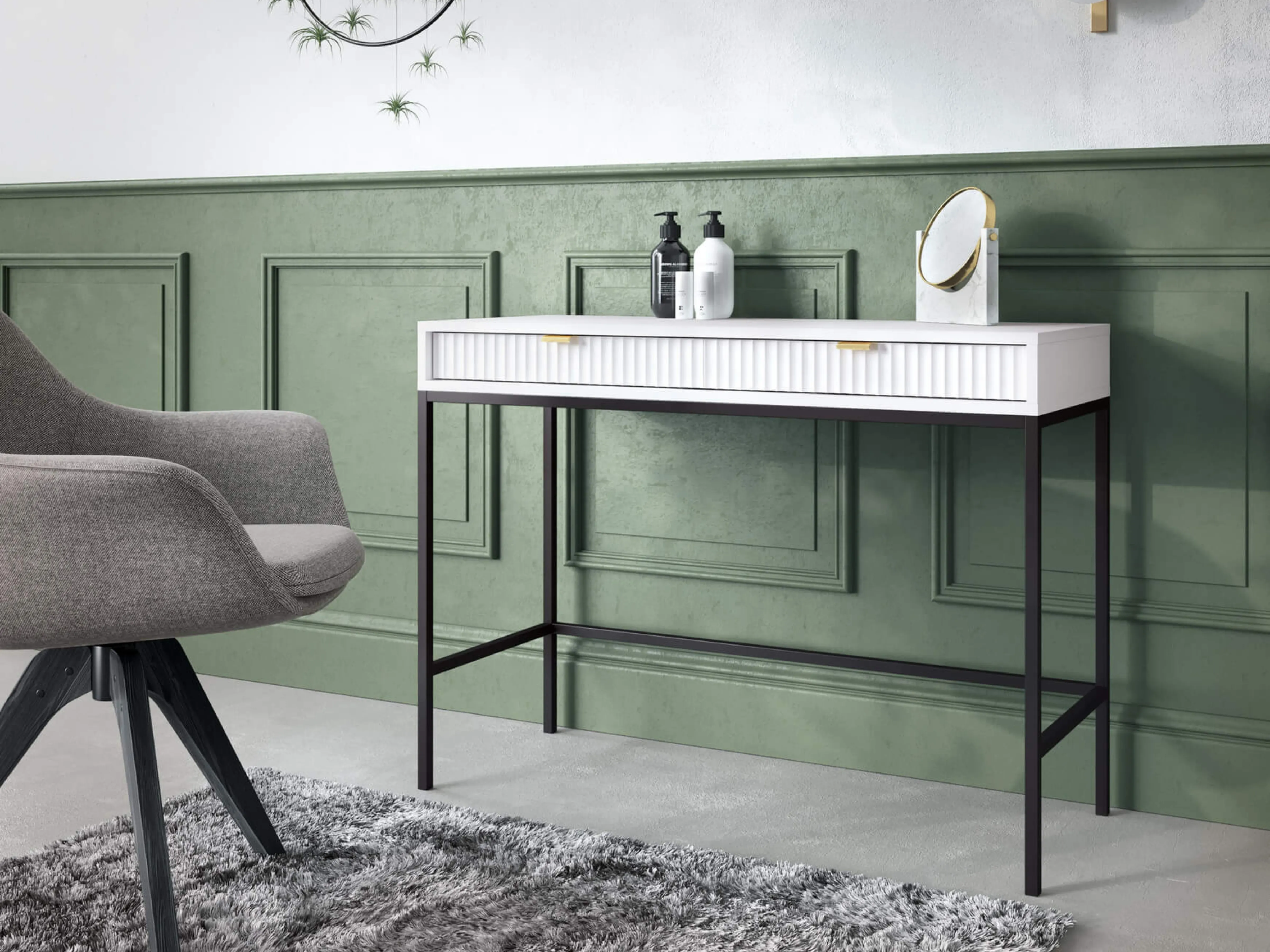 Do wyboru są dwie eleganckie wersje podstawy – czarna lub złota, które doskonale komponują się z komodą w kolorach czarnym, białym, szarym i zielonym, dodając każdemu z tych odcieni unikalnego charakteru i subtelnej klasy.