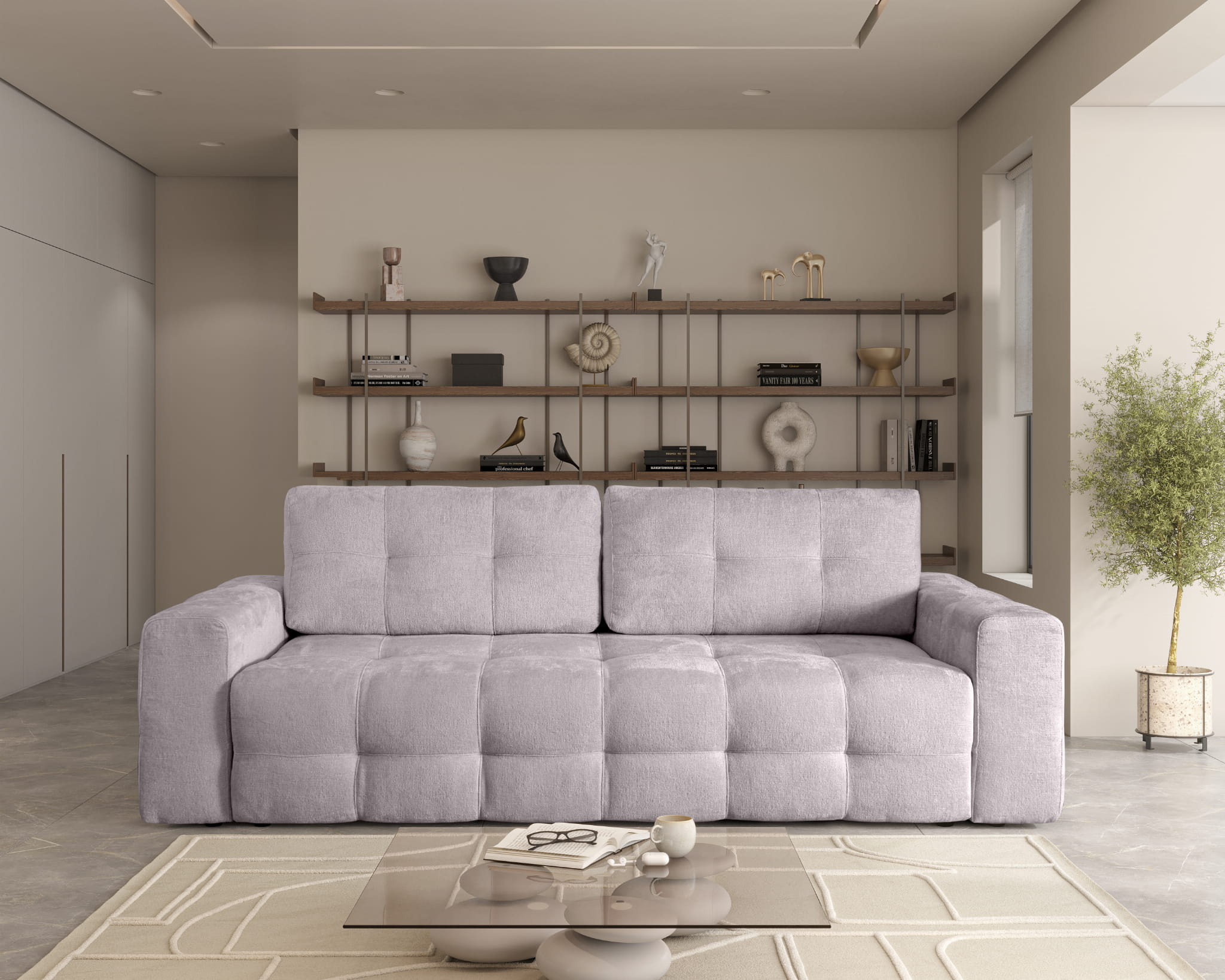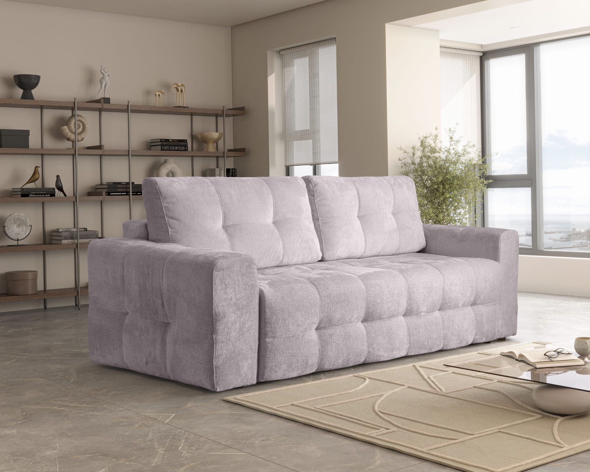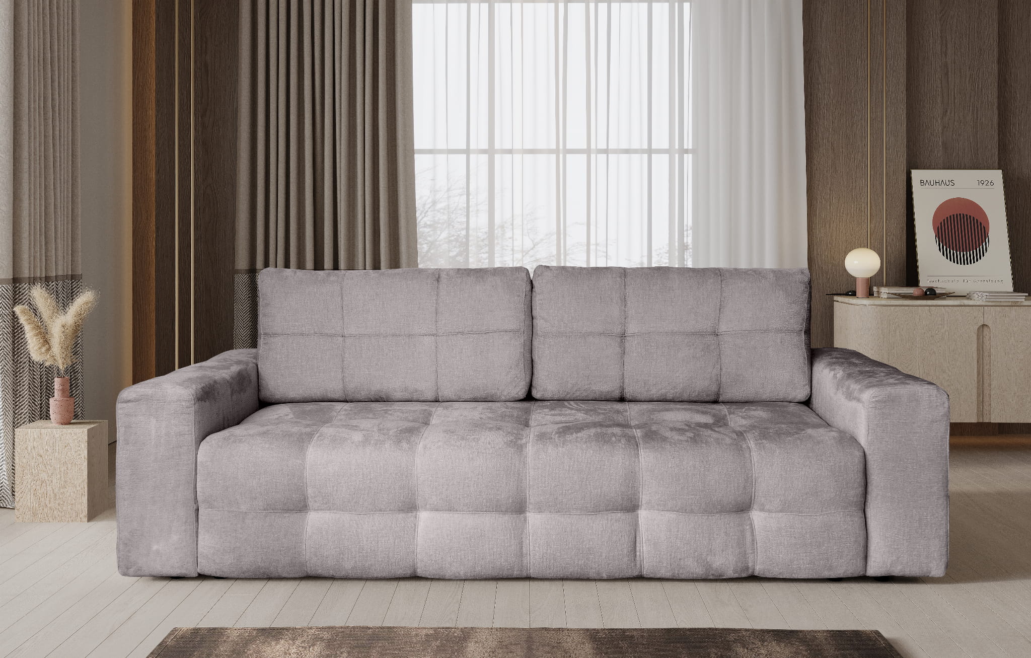 Trzyosobowa Sofa 255x108 SILLI rozkładana z funkcją spania oraz pojemnikiem na pościel, szary szenil
