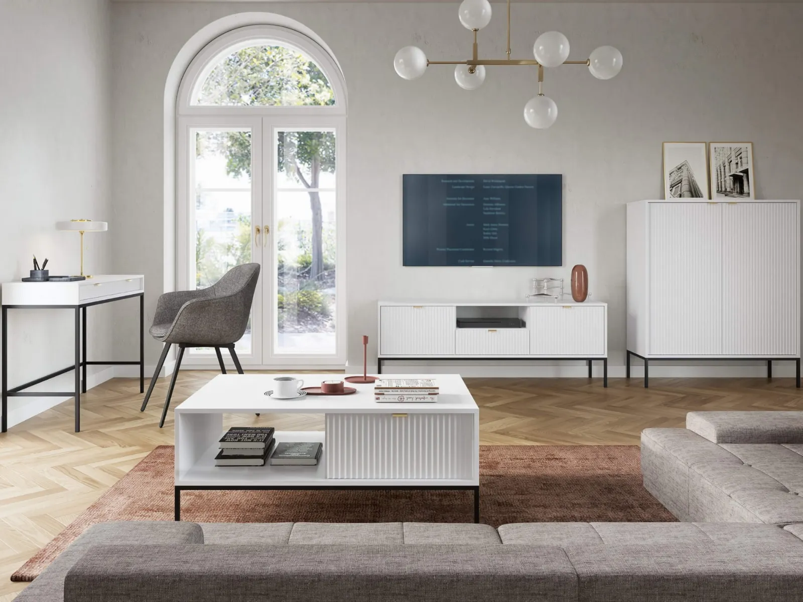 Zestaw mebli do salonu BARI 2 w stylu nowoczesnym frezowane fronty biały czarne nogi