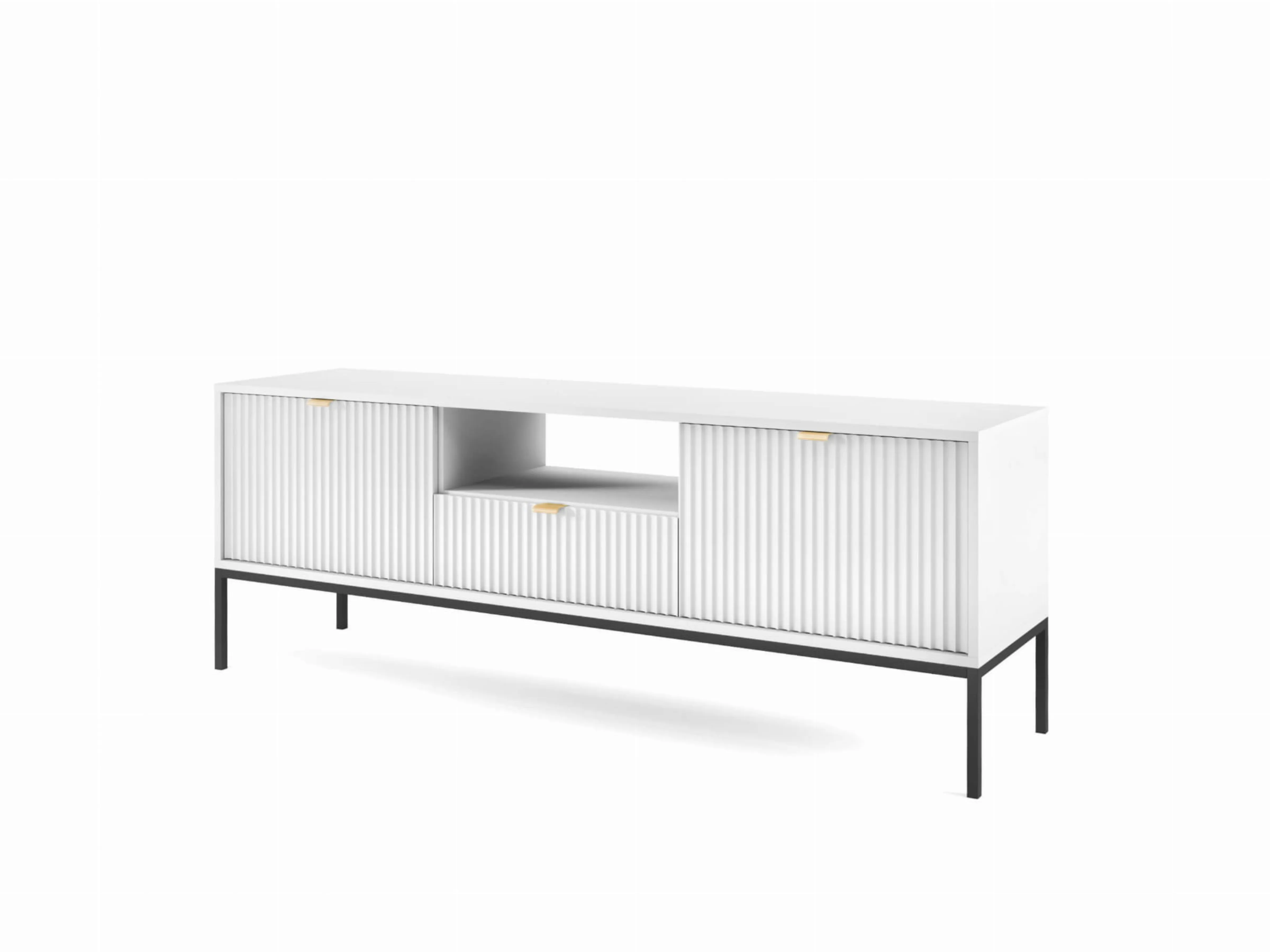 - Szafka RTV 154x56x39 cm BARI RTV154 biała czarne nogi