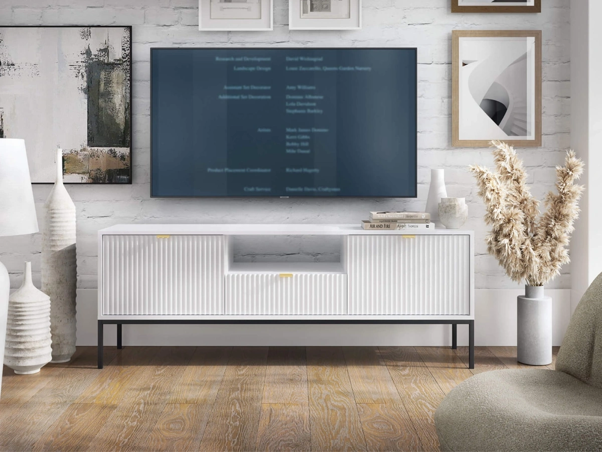Charakterystycznym elementem kolekcji Bari są ryflowane fronty, które dodają meblom wyjątkowego charakteru i głębi. Wykończenie w matowych kolorach nadaje całości elegancji, a złote uchwyty subtelnie podkreślają nowoczesny styl mebli.