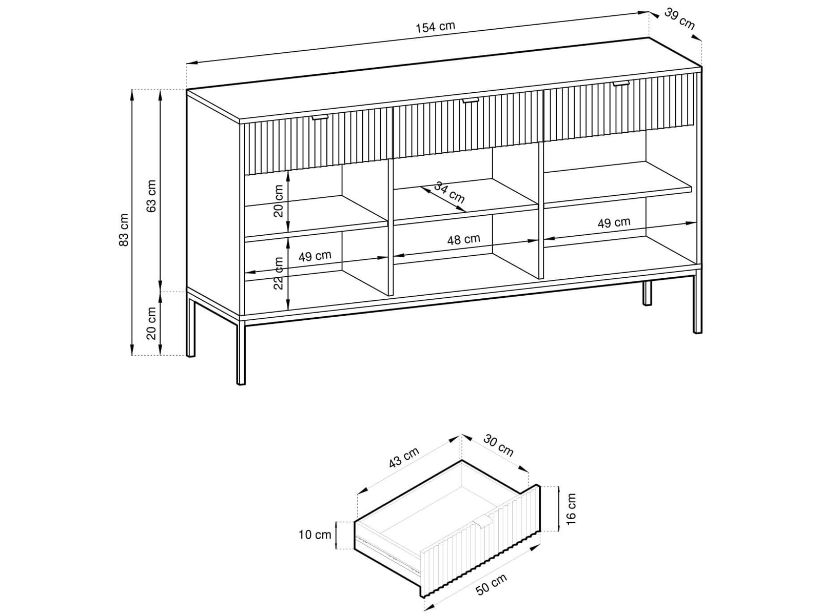 | Komoda - szerokość x wysokość x głębokość | 154 cm x 83 cm x 39 cm BARI KSZ154 |