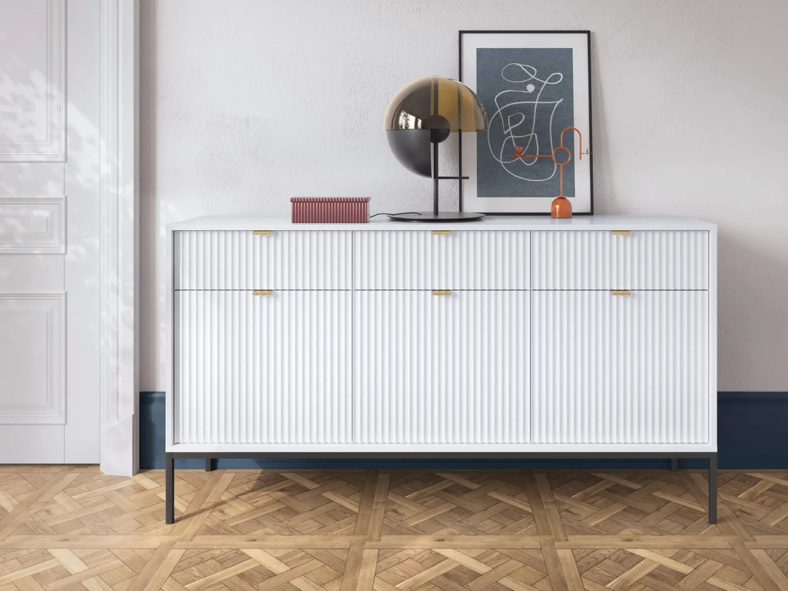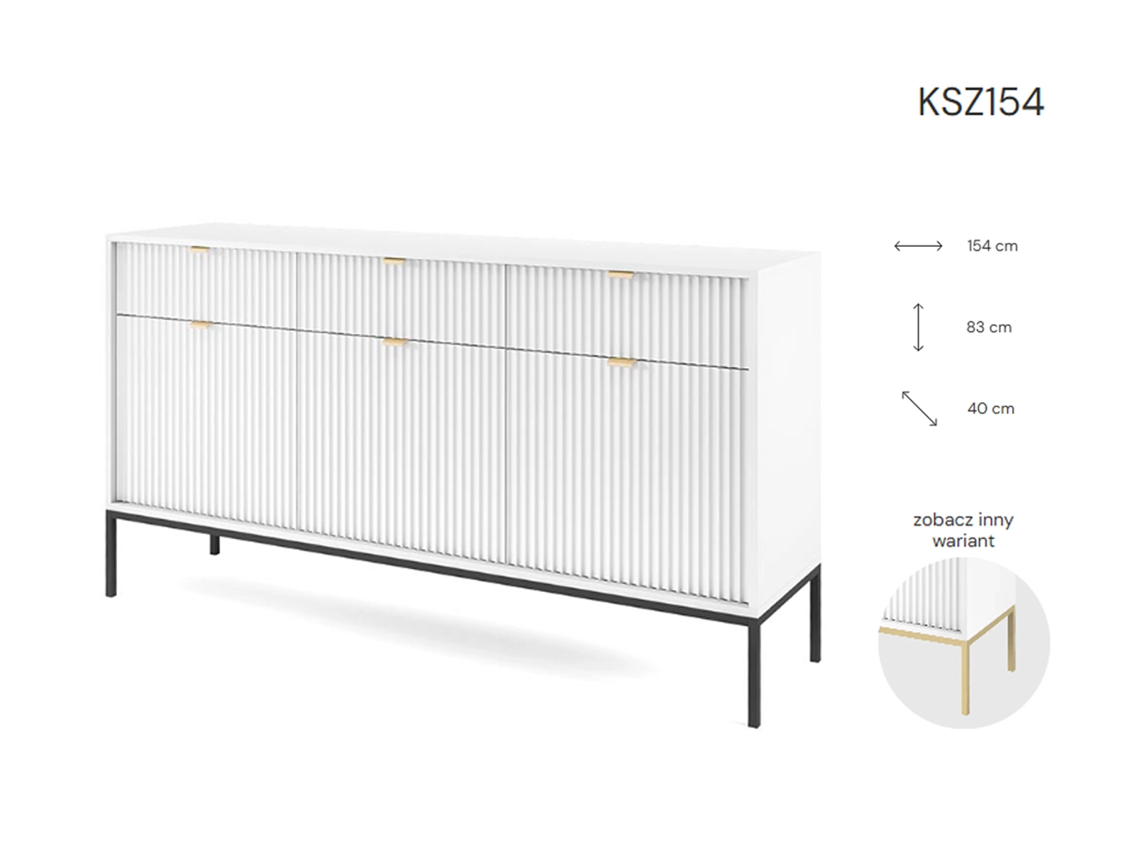 - Komoda 154x83x39 cm BARI KSZ154 biała czarne nogi