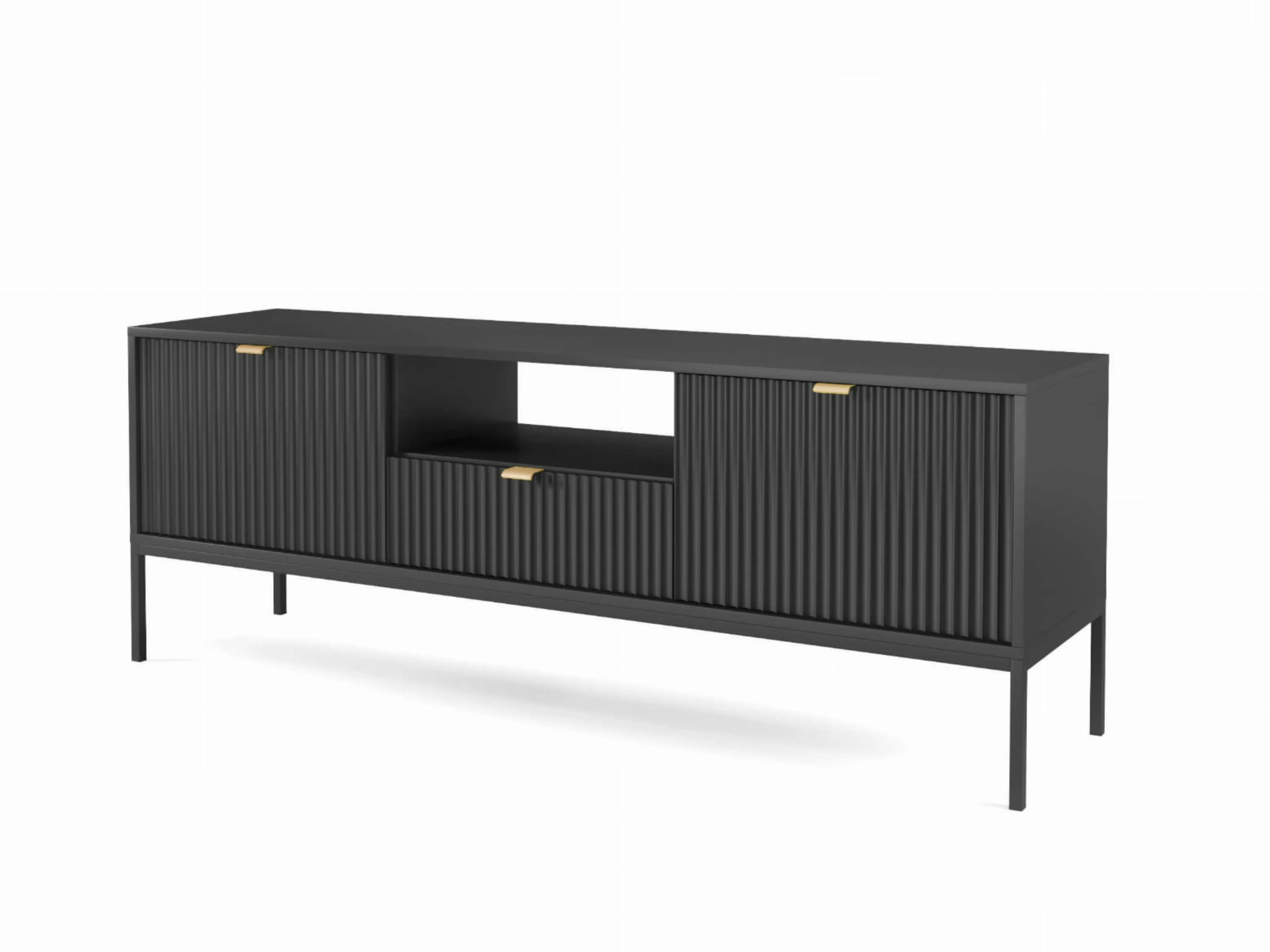 - Szafka RTV 154x56x39 cm BARI RTV154 czarna czarne nogi